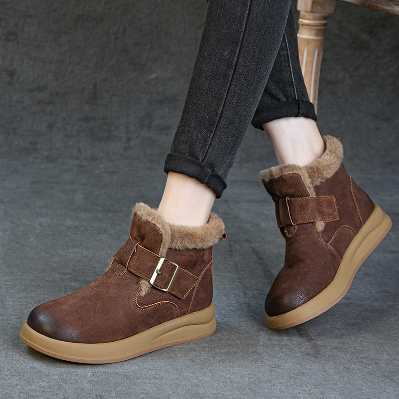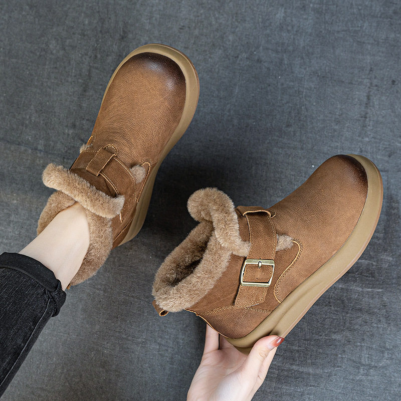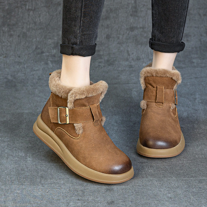 头层牛皮冬季新款厚底加绒保暖勃肯短筒靴复古舒适女棉靴雪地靴