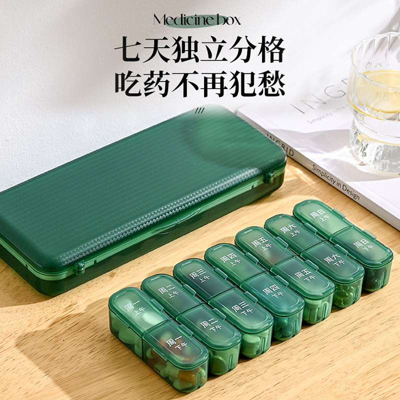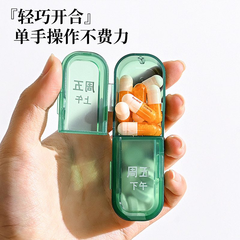 早晚药盒便携式一周七天随身分药器一日大容量吃药提醒药品分装盒