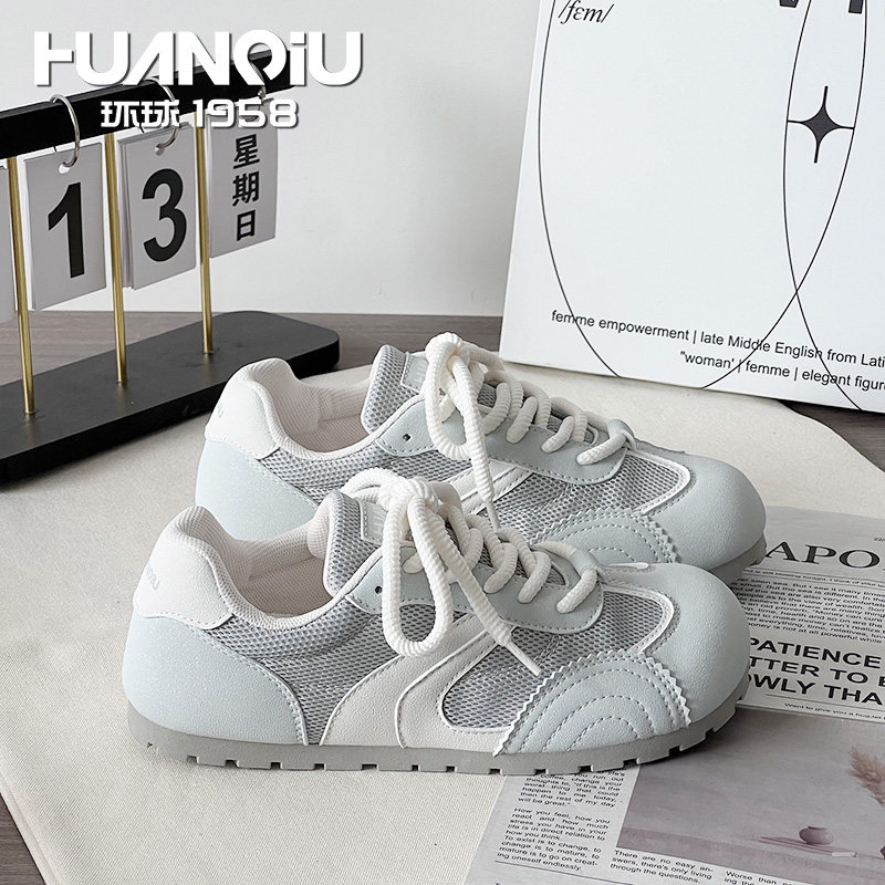 环球网面透气德训鞋女夏2026新款超火百搭轻便舒适不闷脚休闲女鞋