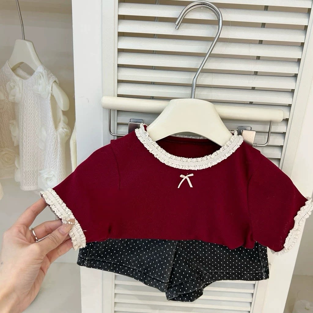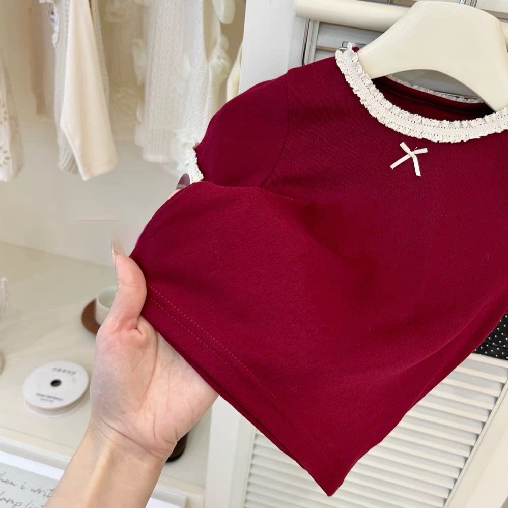 女童短袖T恤2026夏季新款韩版儿童宽松花边圆领上衣女宝宝套装潮