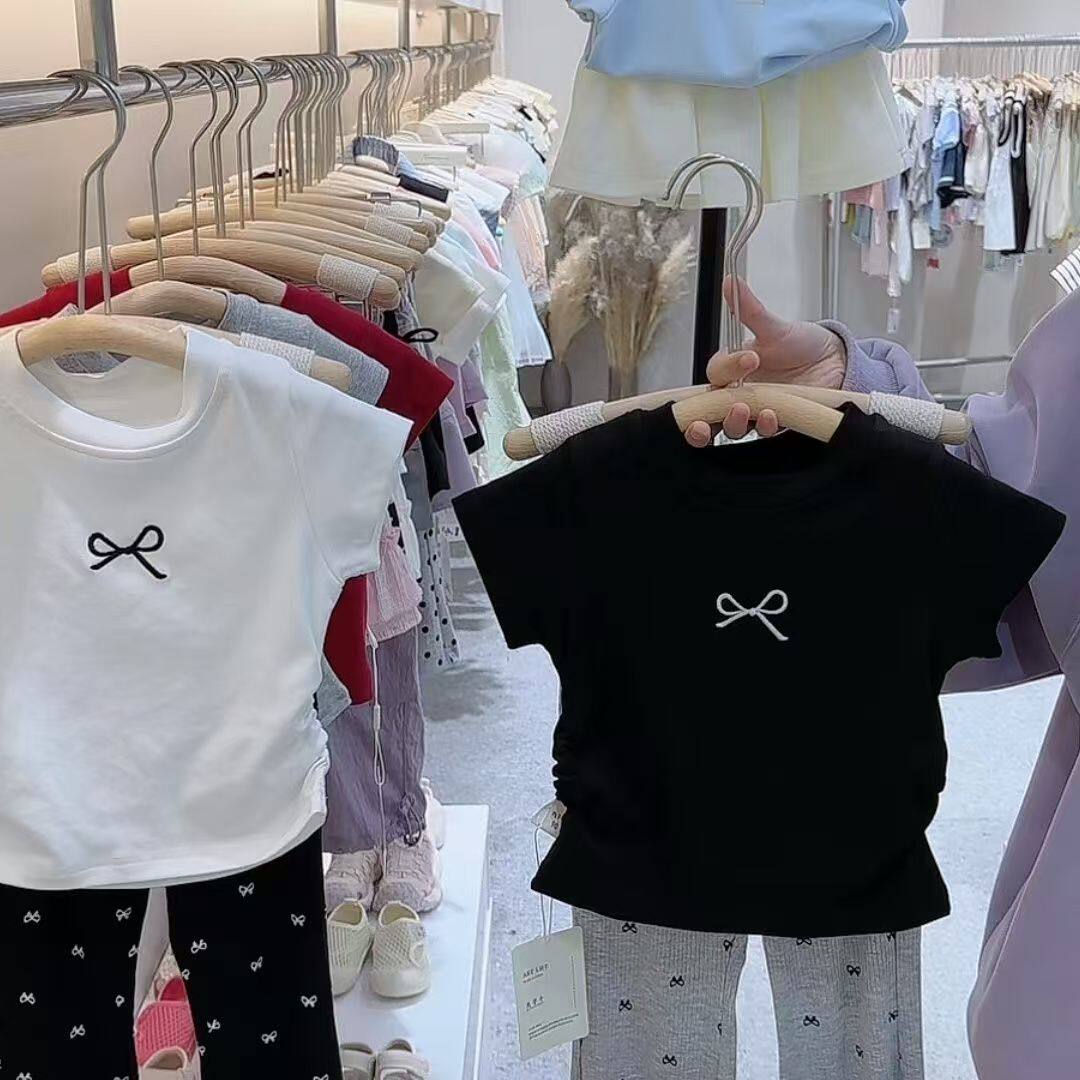 纯棉女童短袖T恤2026夏季新款韩版儿童宝宝洋气修身高腰短款上衣