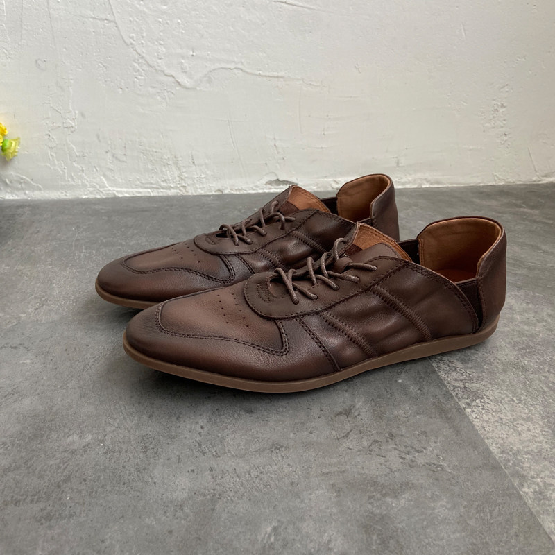 日系复古男士休闲小皮鞋 秋季舒适德训单鞋英伦百搭真皮乐福鞋男