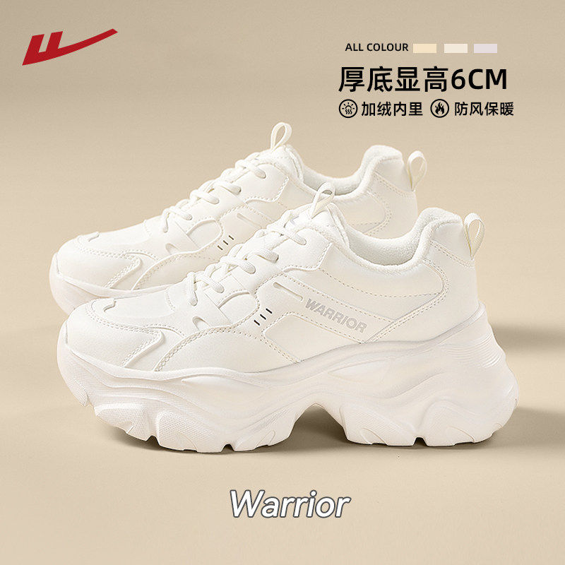 回力加绒女鞋2026冬季新款老爹鞋保暖厚底鞋子女款皮面运动小白鞋