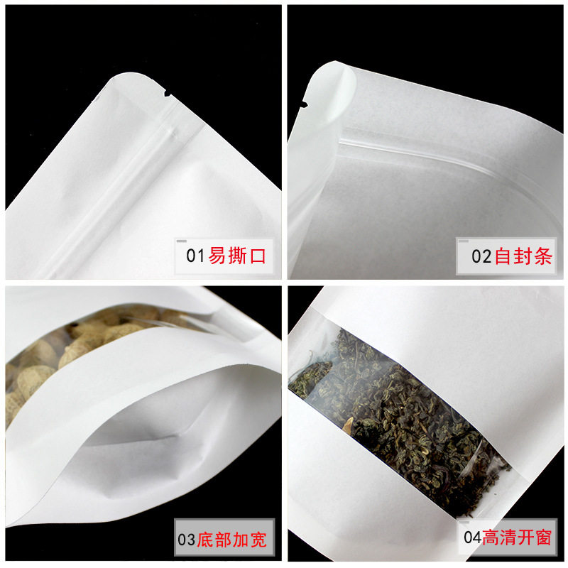 白色牛皮纸袋开窗自立自封袋高清茶叶袋糖果袋食品包装袋全套样品
