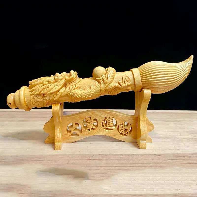 黄金檀木大笔进财文昌盘龙笔摆件 金榜题名毛笔文玩手把玩件考生