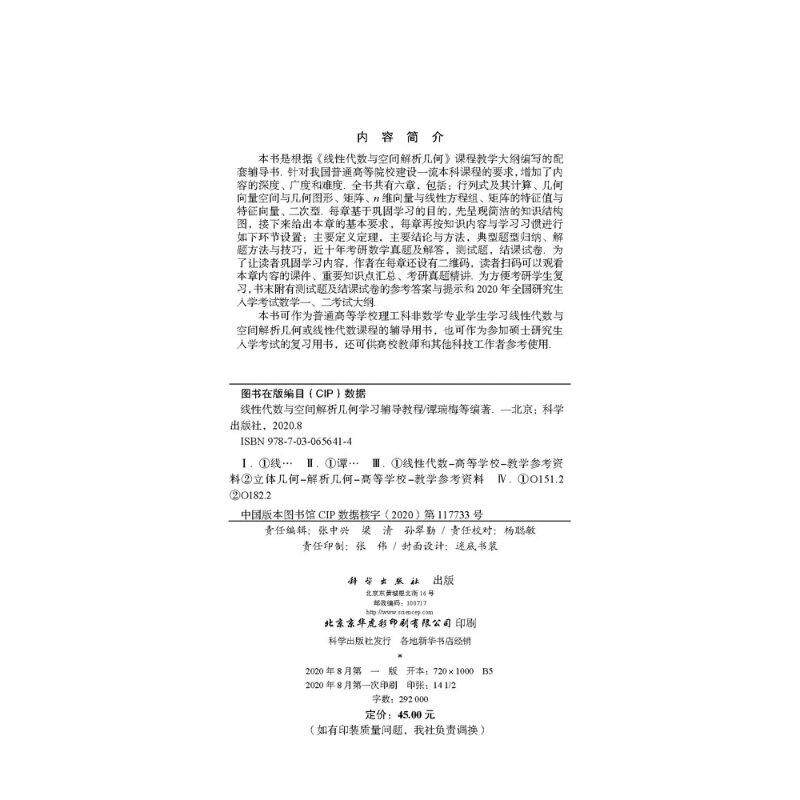 [按需印刷]线性代数与空间解析几何学习辅导教程科学出版社
