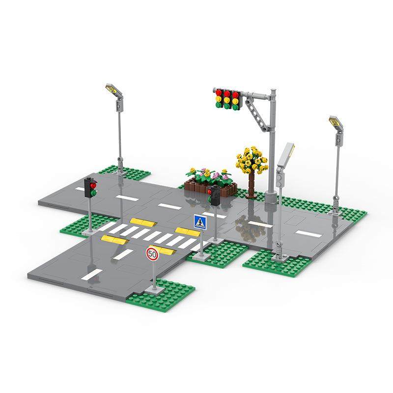 MOC小颗粒积木城市场景交通灯道路底板街景公路马路天桥60304零件