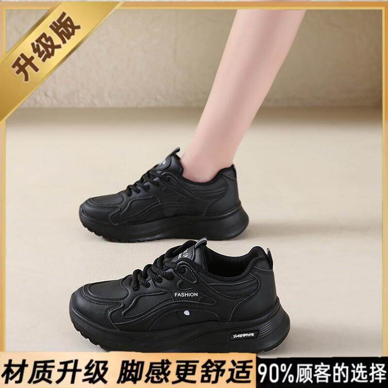 新品女鞋踩屎感黑色工作运动鞋女款秋季皮面不累脚防水防滑厨房老