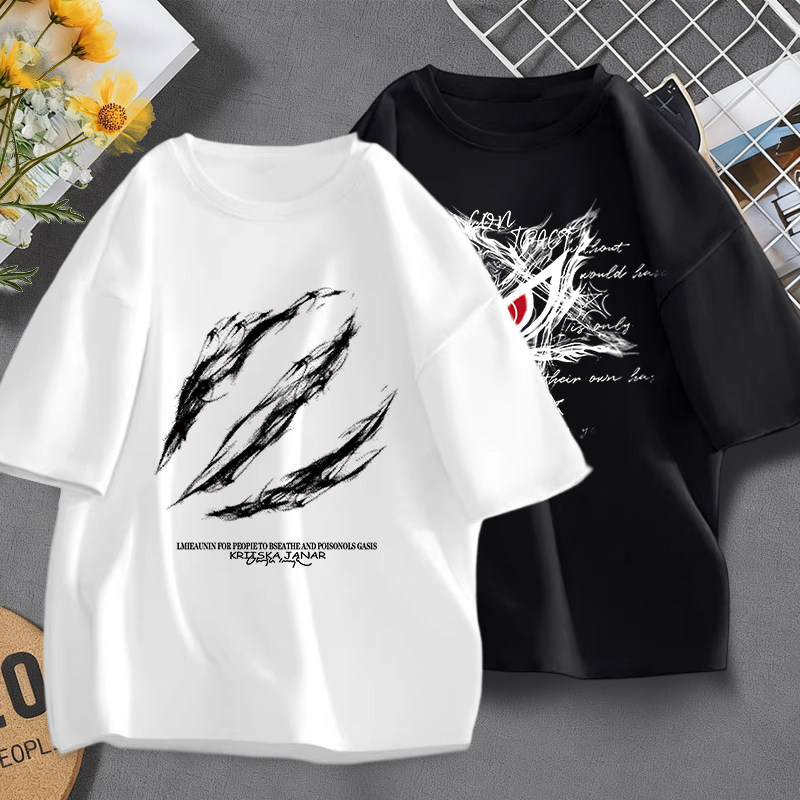 短袖男款2026夏季新款港风大码t恤青少年白色t落肩宽松上衣男体恤