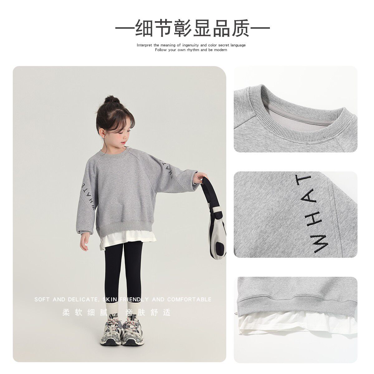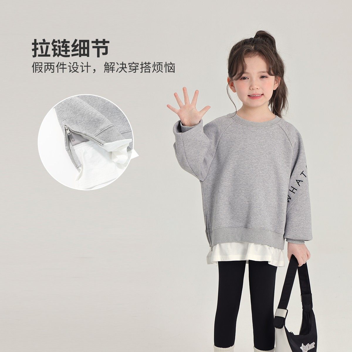 布丁哈鲁童装春装女童上衣2026春秋新款儿童百搭简约假两件卫衣