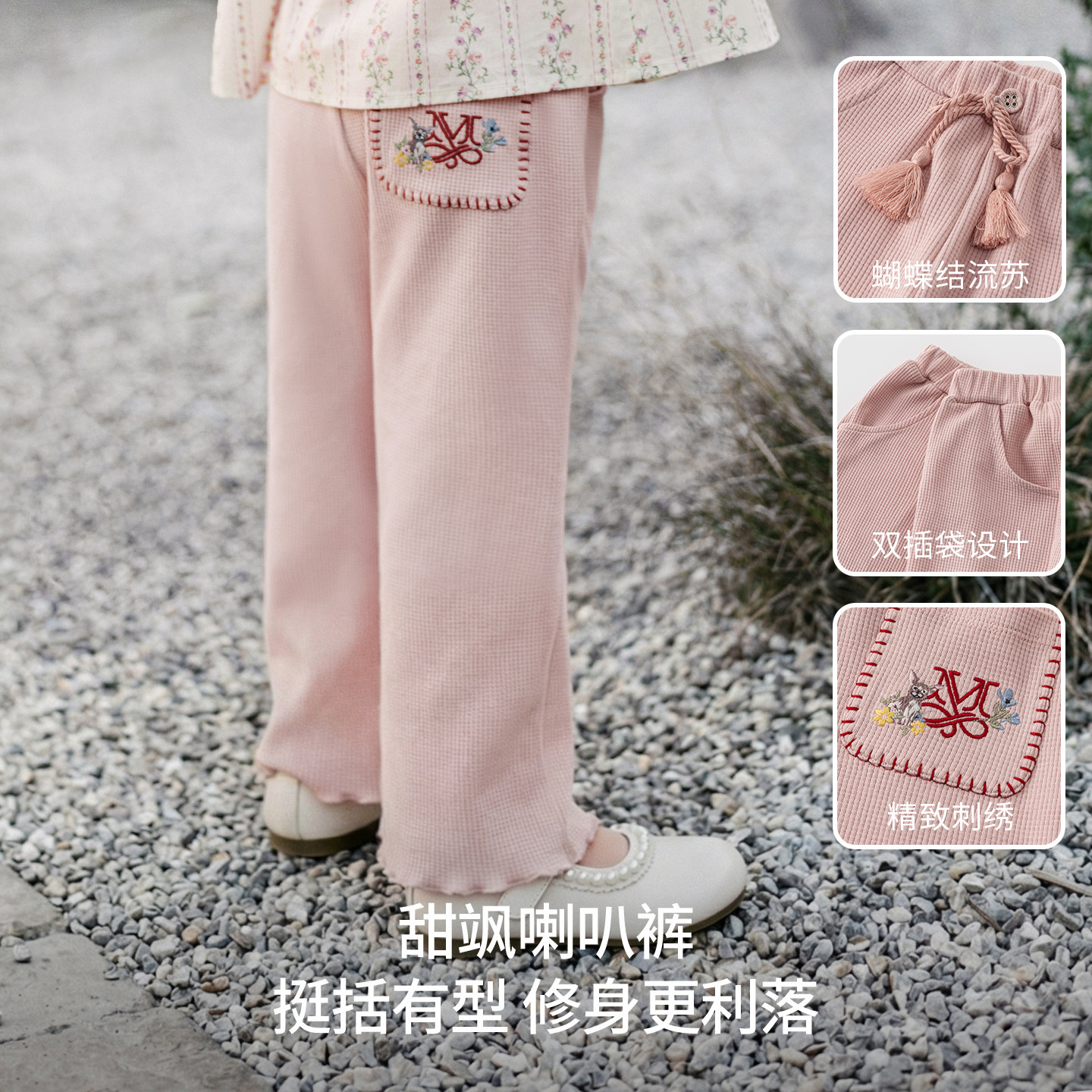 嫚熙童装儿童华夫格卫裤2026新款春夏季裤子女童喇叭裤宝宝阔腿裤