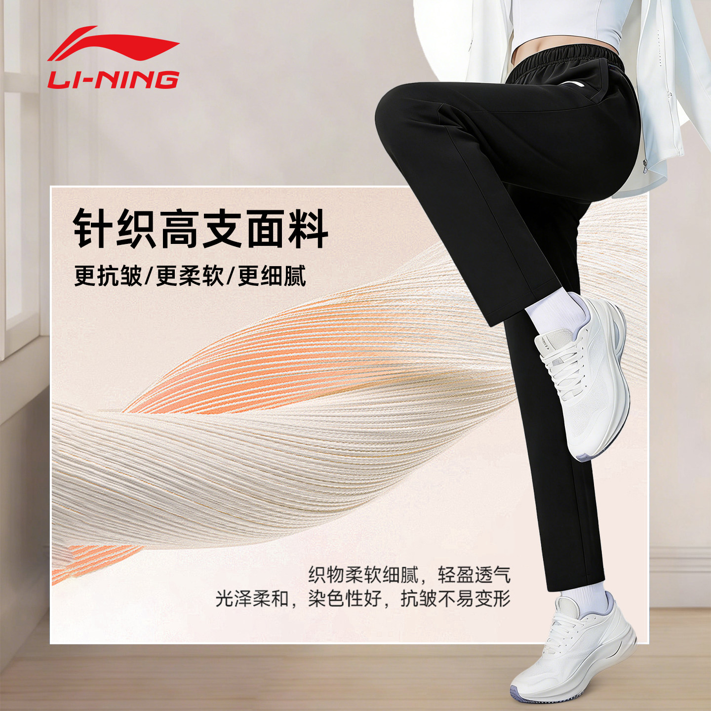 李宁运动裤女士春秋女款2026新款羽毛球训练健身宽松直筒长卫裤子