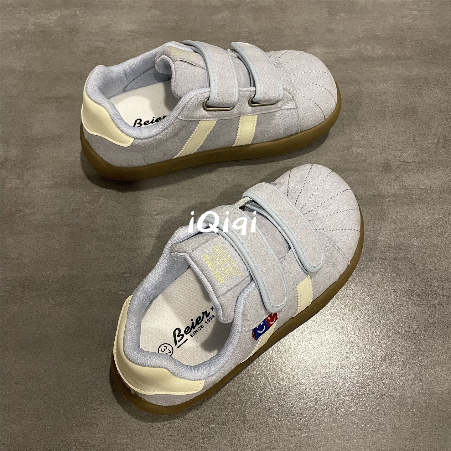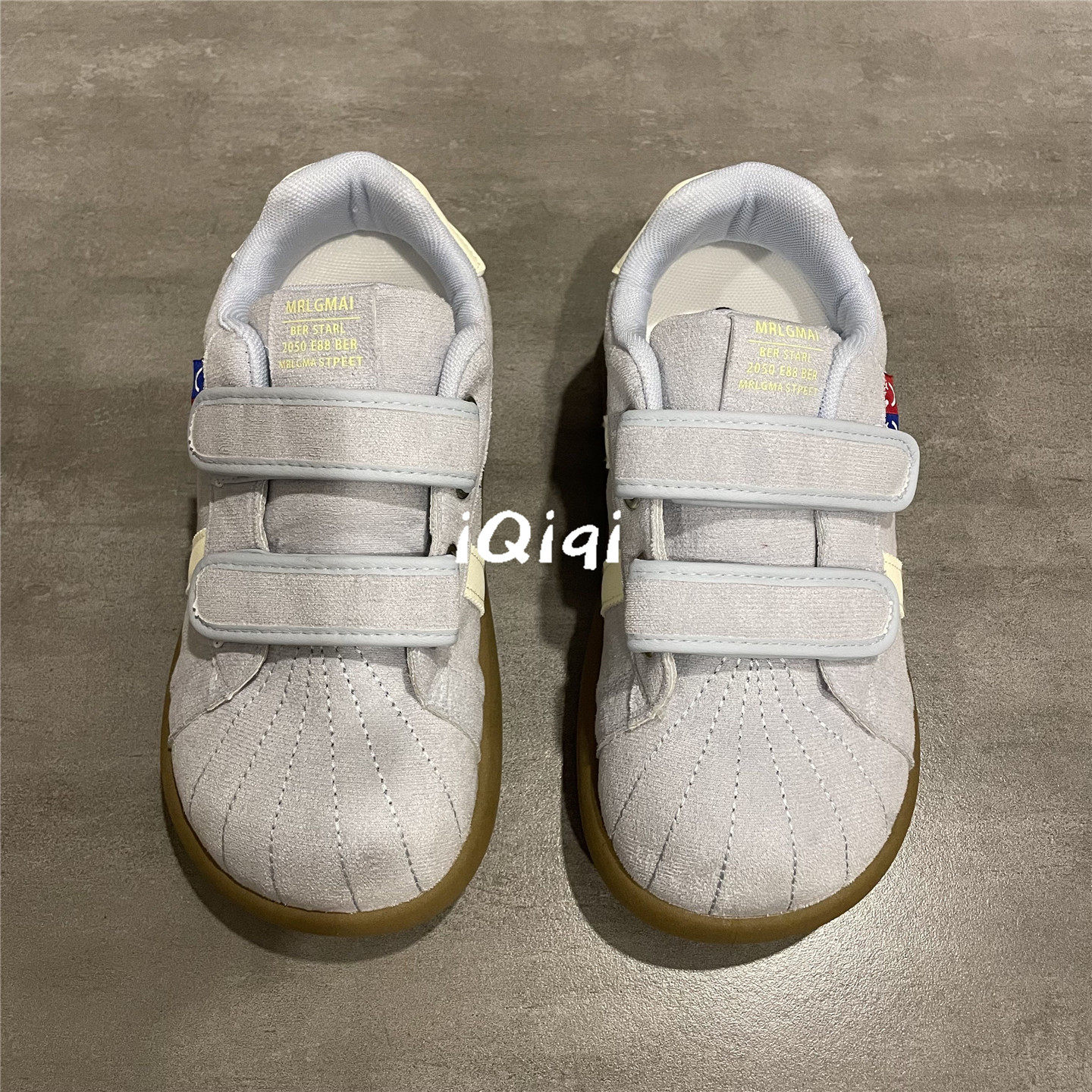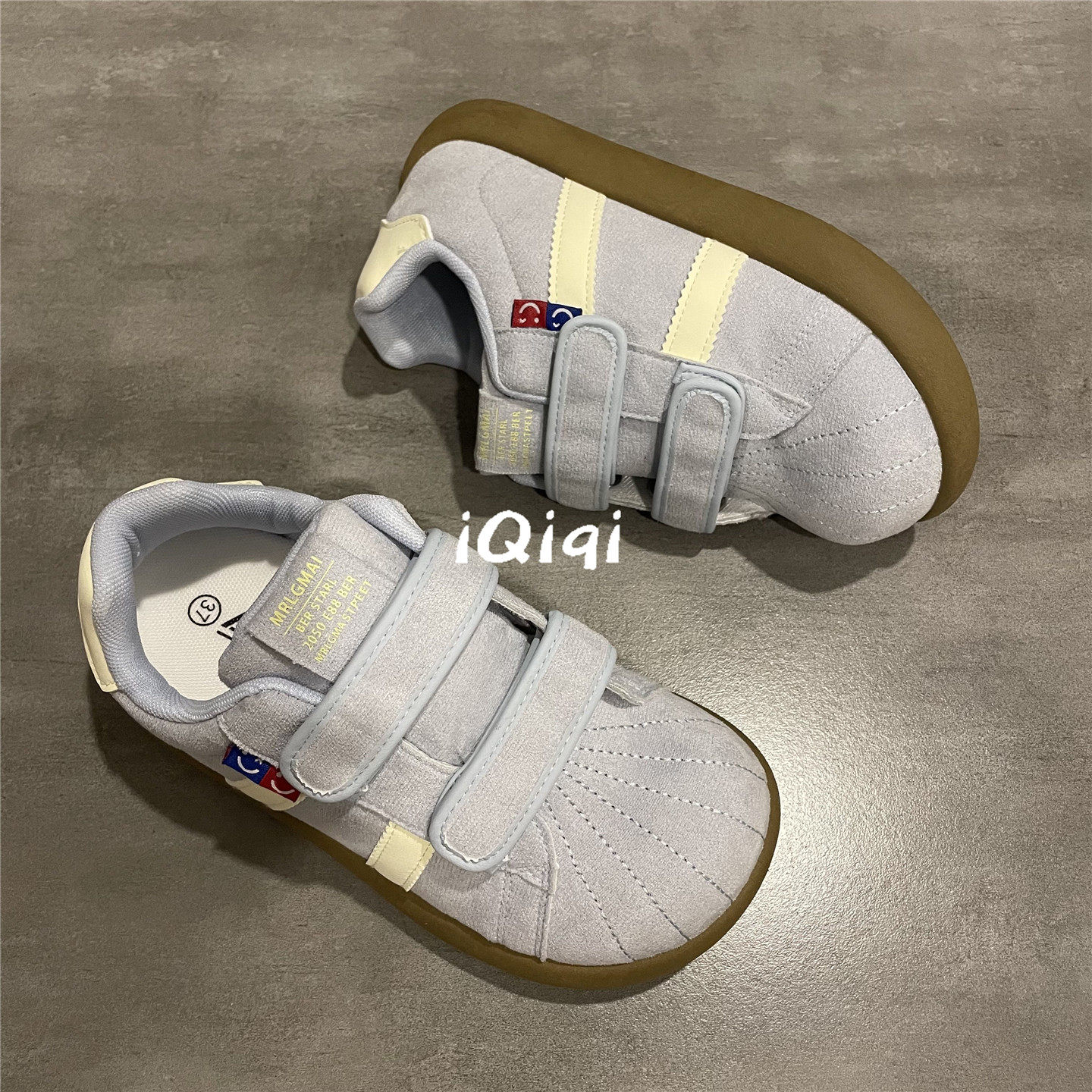 七七主人家 浅蓝色爆款学生板鞋女小众原创贝壳鞋子女魔术贴女鞋