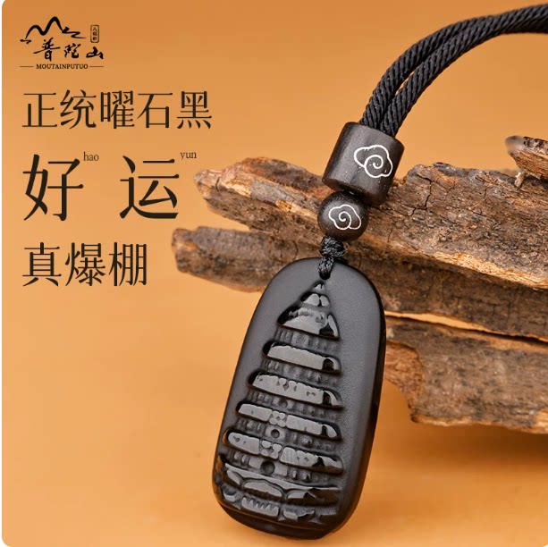 天然冰种黑曜石九层文昌塔吊坠上岸金榜题名男女生挂件项链