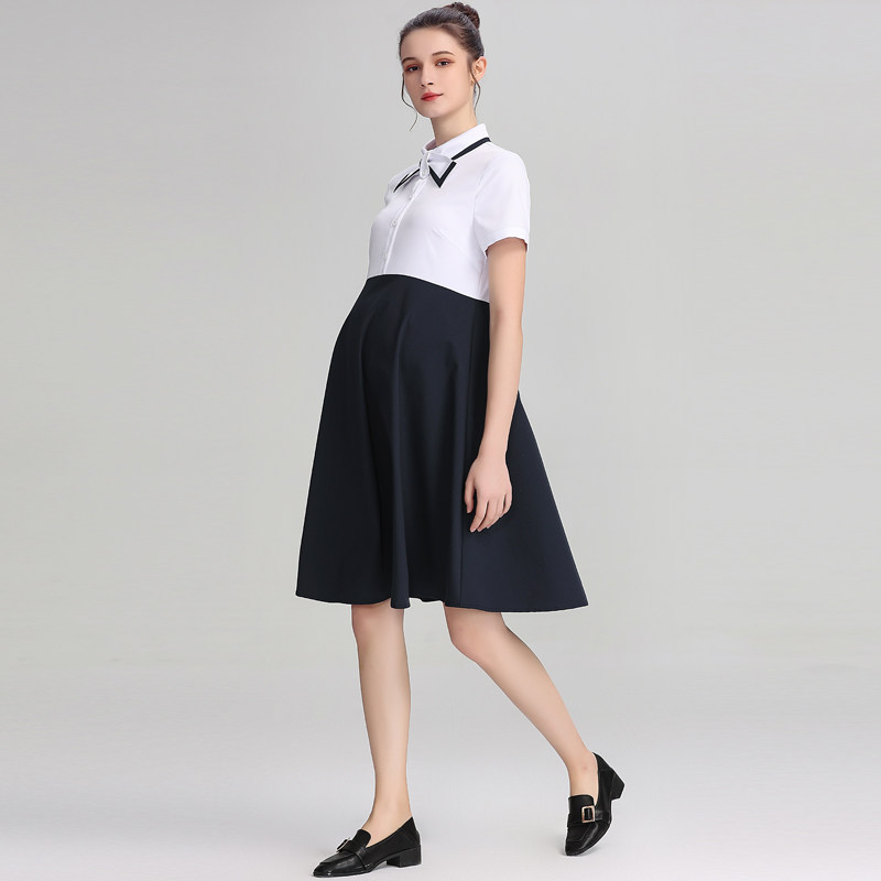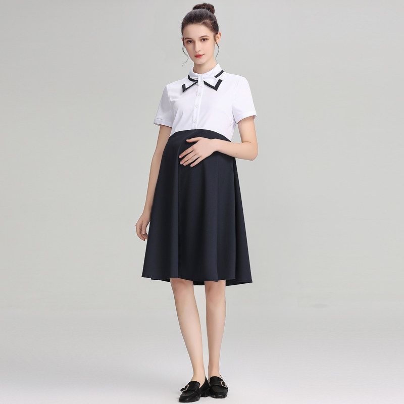 孕妇装夏季新款通勤上班面试孕妇连衣裙女短袖中长款正装孕期裙子