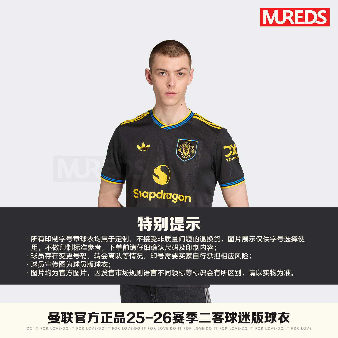 曼联官方正品阿迪达斯25-26赛季二客男子球迷版短袖球衣KD4225