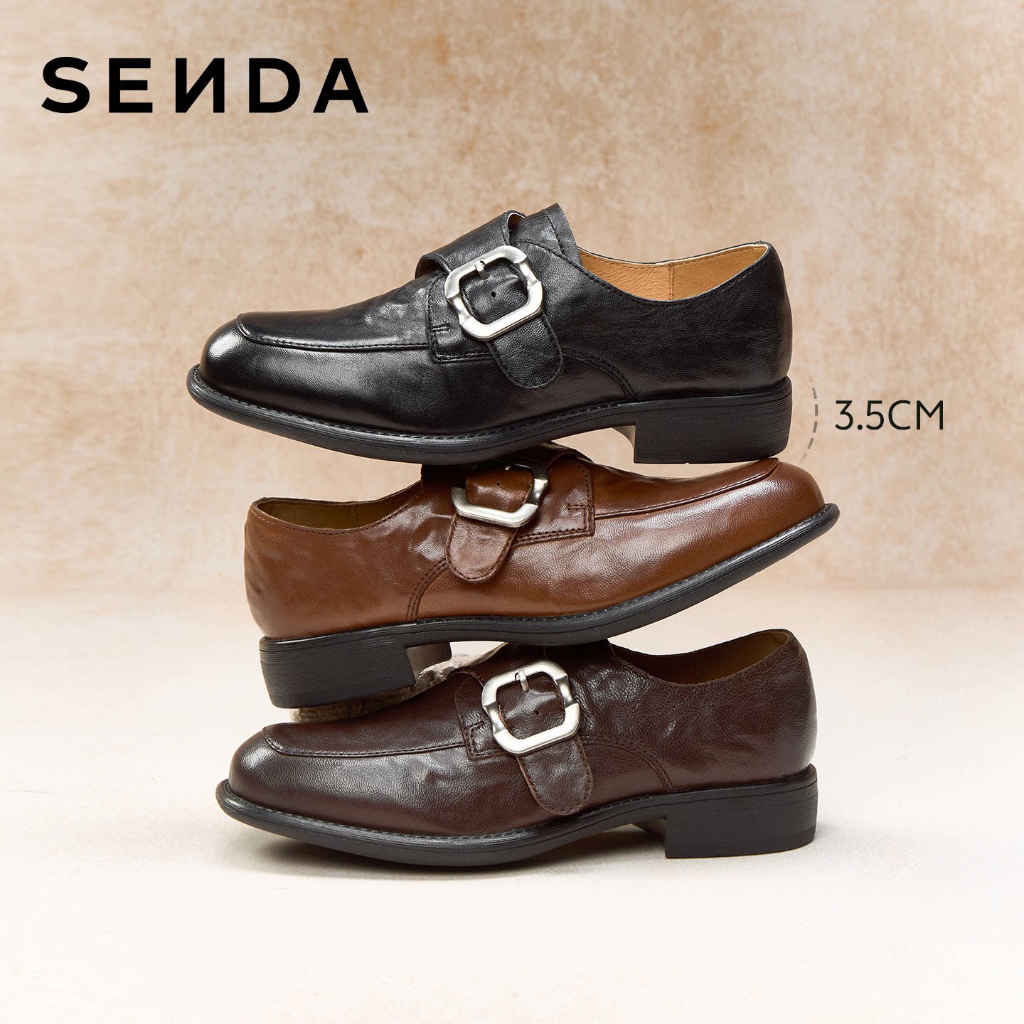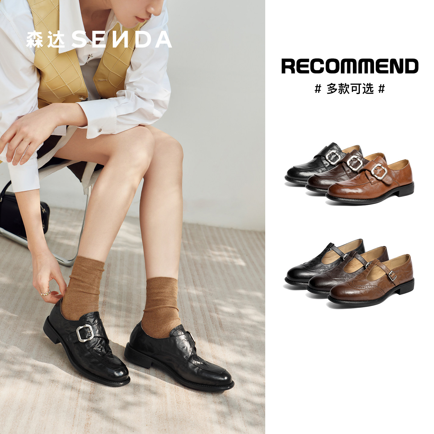 森达厚底乐福鞋女鞋26新款商场同款软羊皮英伦风黑色皮鞋真皮单鞋