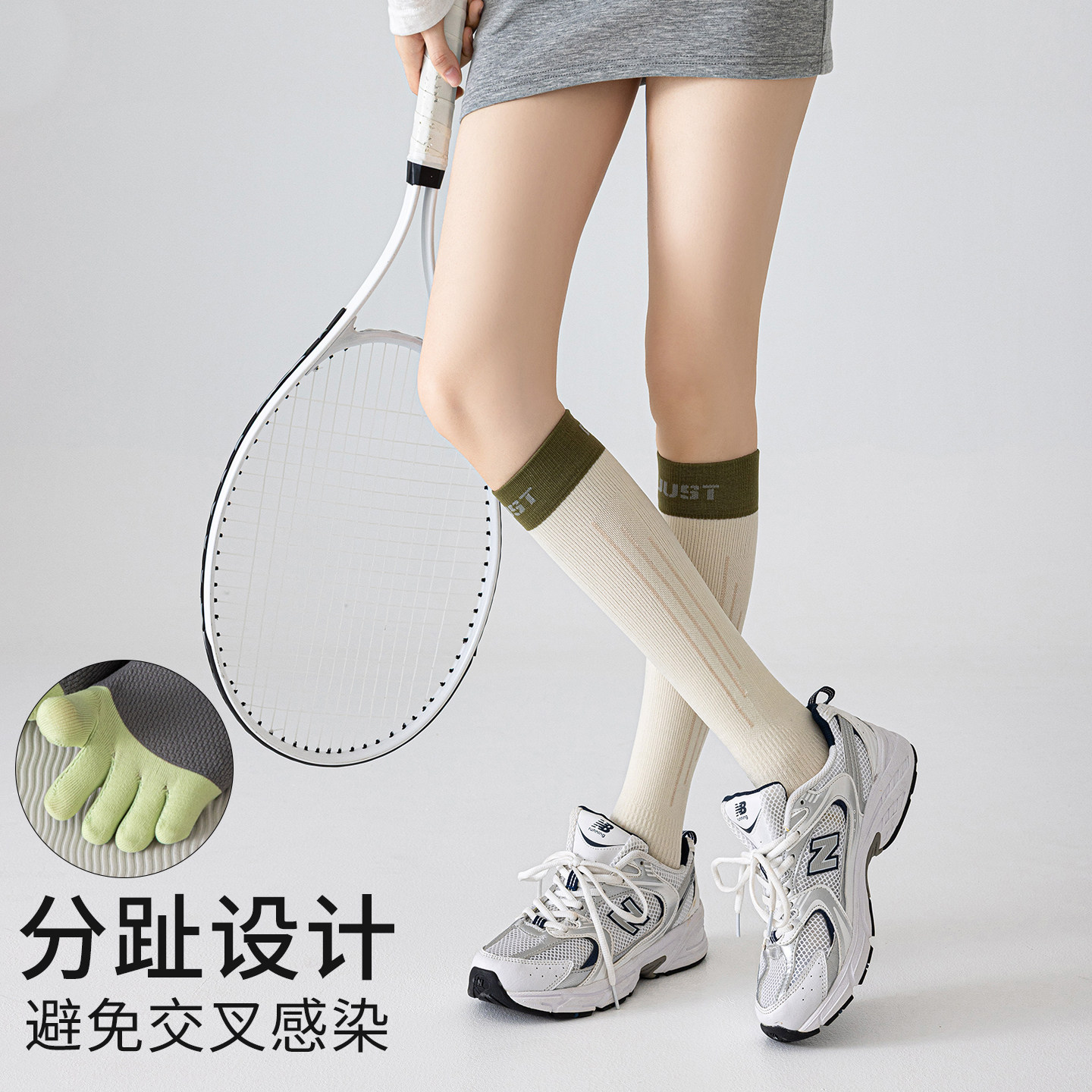 五指袜子女春夏季专业普拉提运动防臭瑜伽健身防滑白色小腿长筒袜