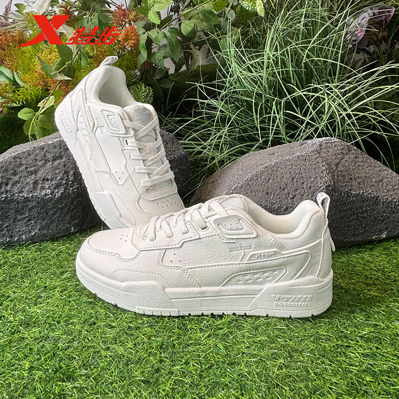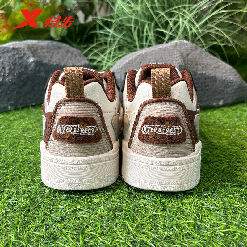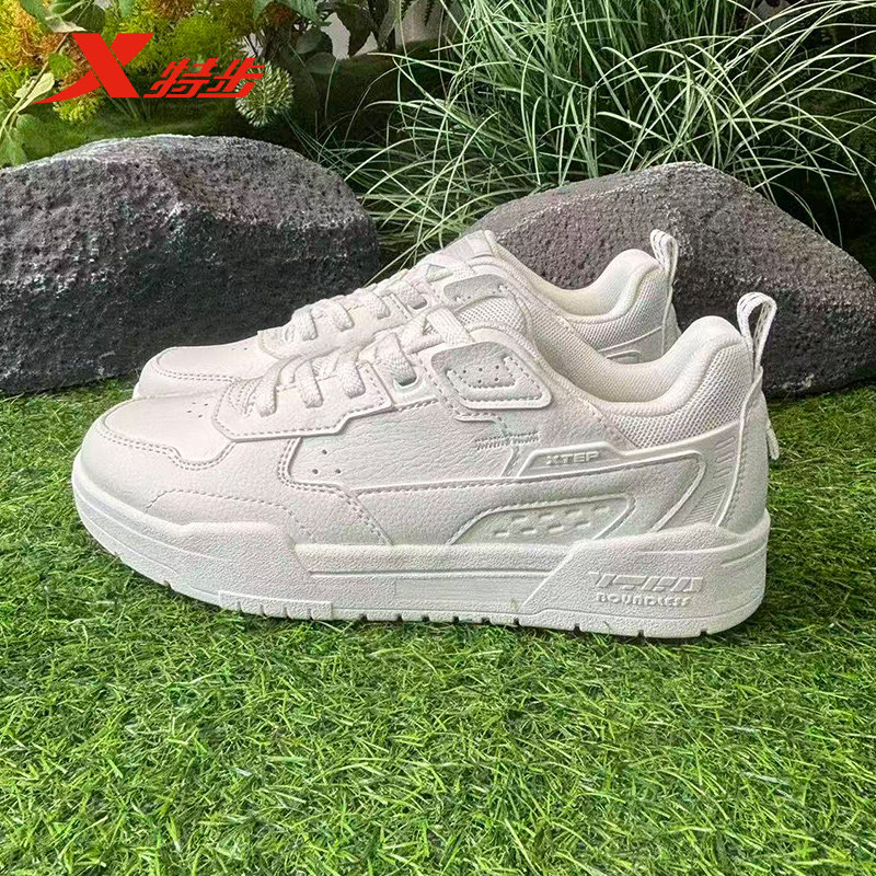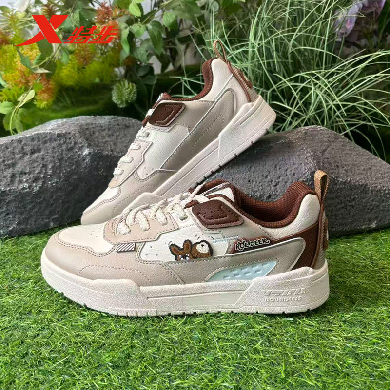 特步休闲女板鞋2025冬季新款厚底皮革面女款运动鞋975418 310049