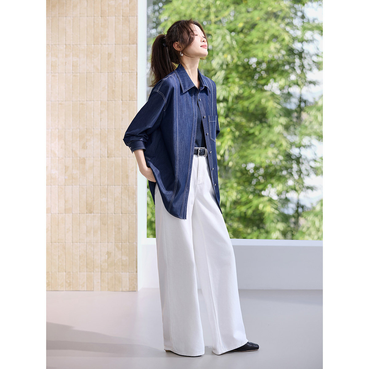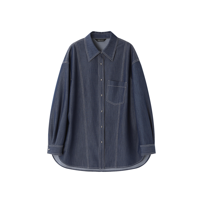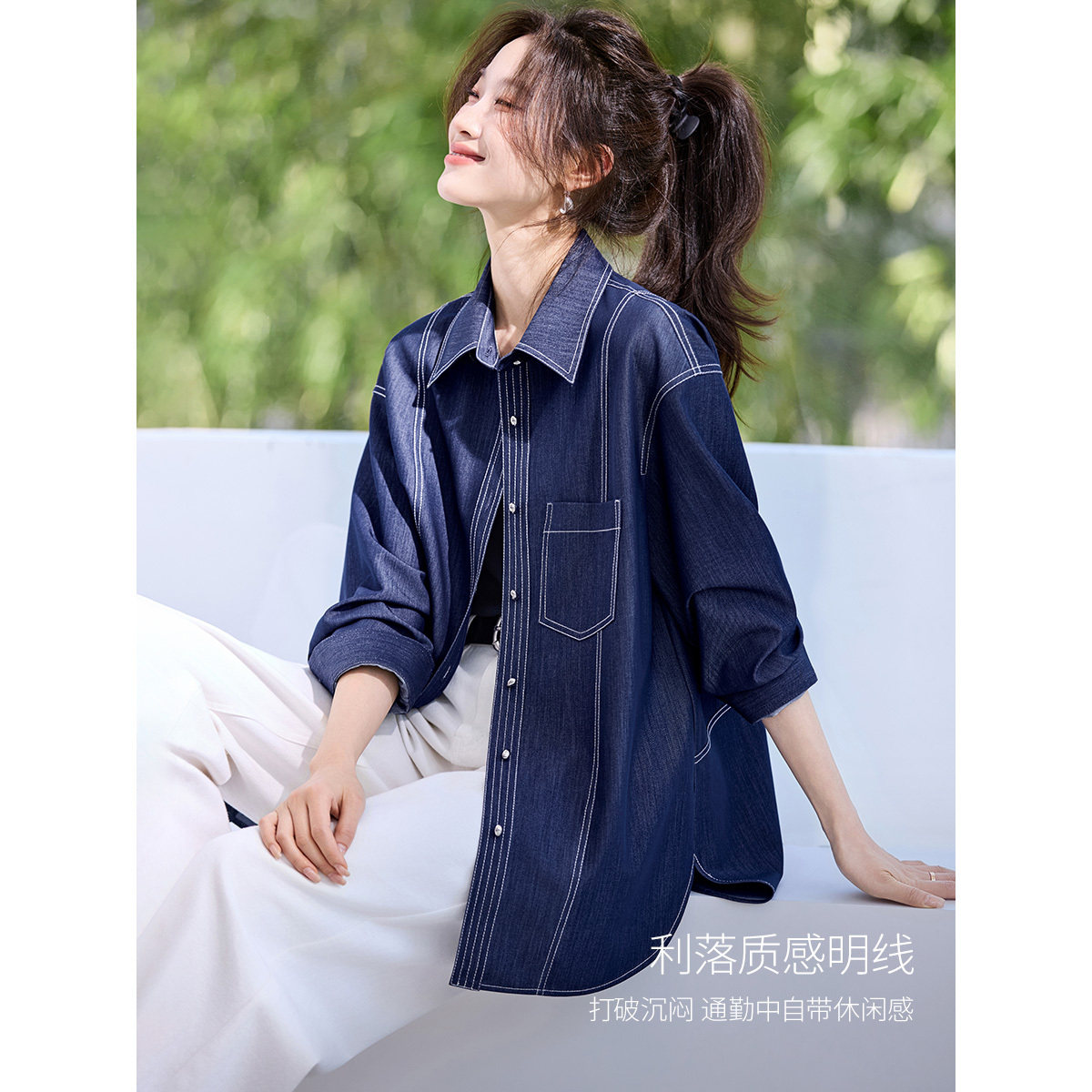 沫晗依美复古丹宁仿牛仔外套2026春季新款休闲百搭设计感衬衫女款