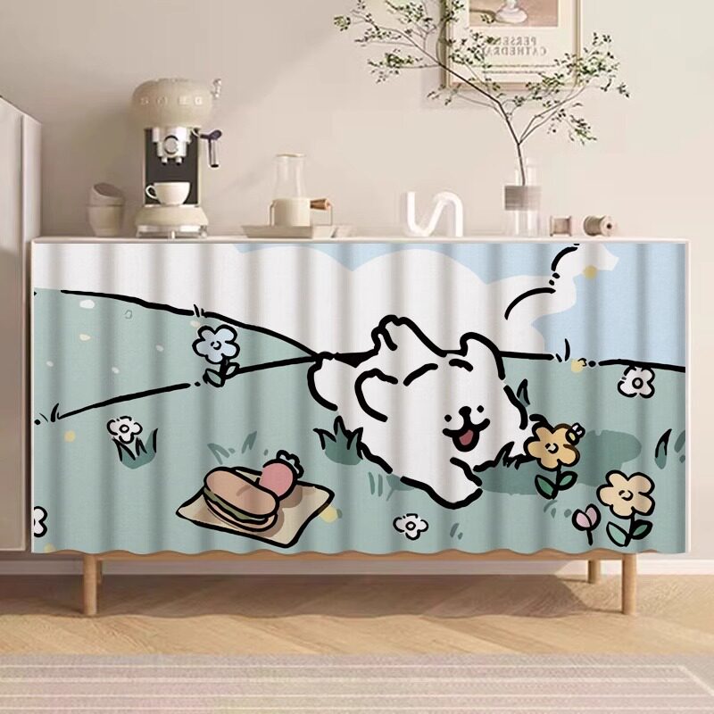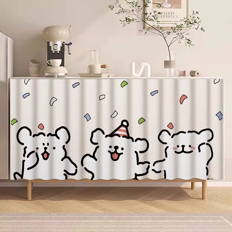卡通无门小柜子遮挡帘魔术贴防尘帘电视柜储物柜货架杂物遮丑布帘
