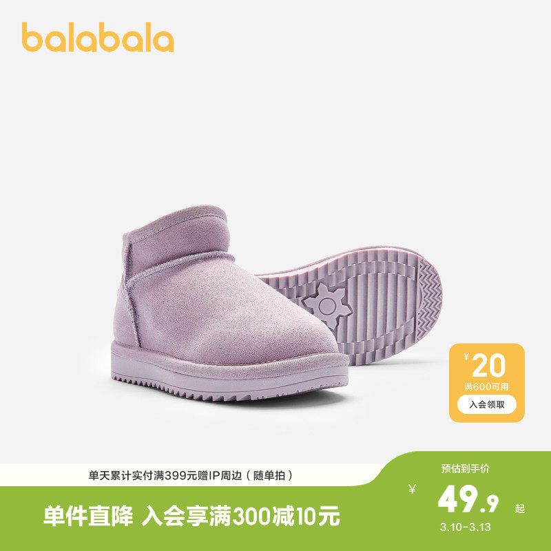 巴拉巴拉童鞋儿童雪地靴男童女童短靴加厚加绒冬季靴子简约防滑潮