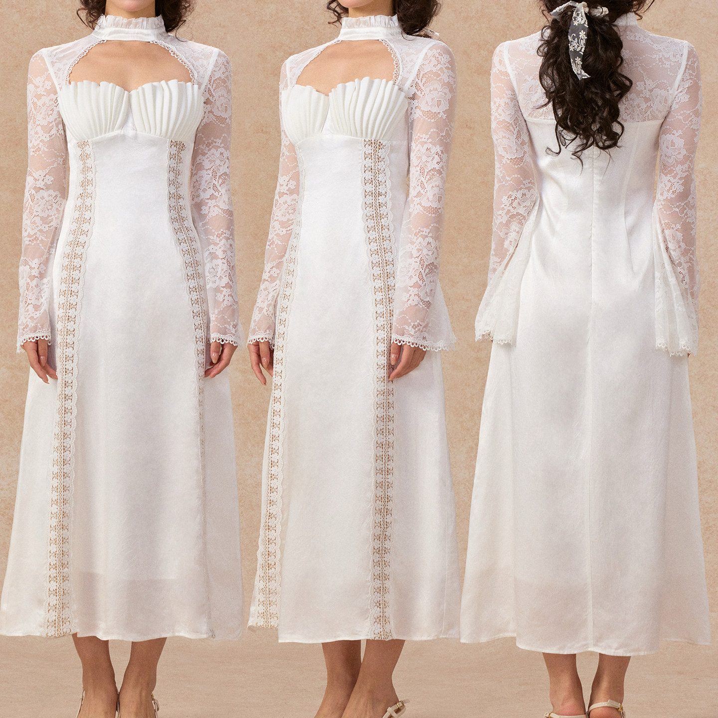 LaceMade 月下赫拉 法式高级醋酸珠光白色礼服裙轻婚纱长袖连衣裙