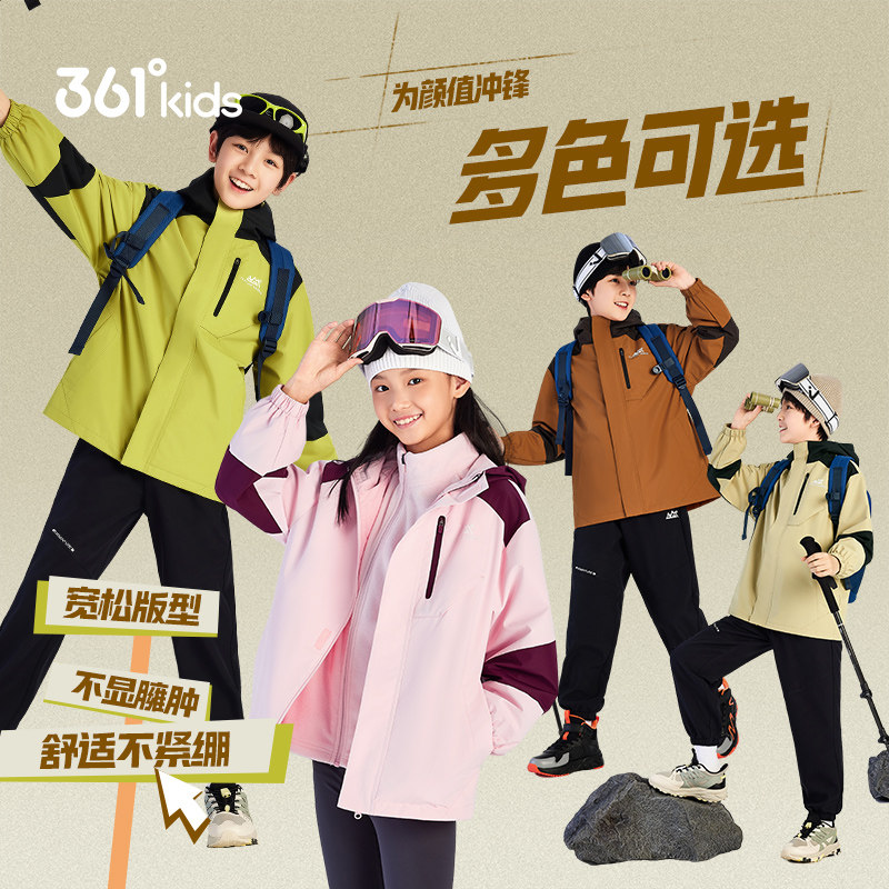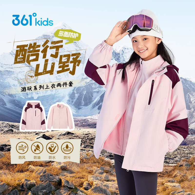 四防科技|361°童装男女童上衣两件套2025冬季新款三合一户外外套