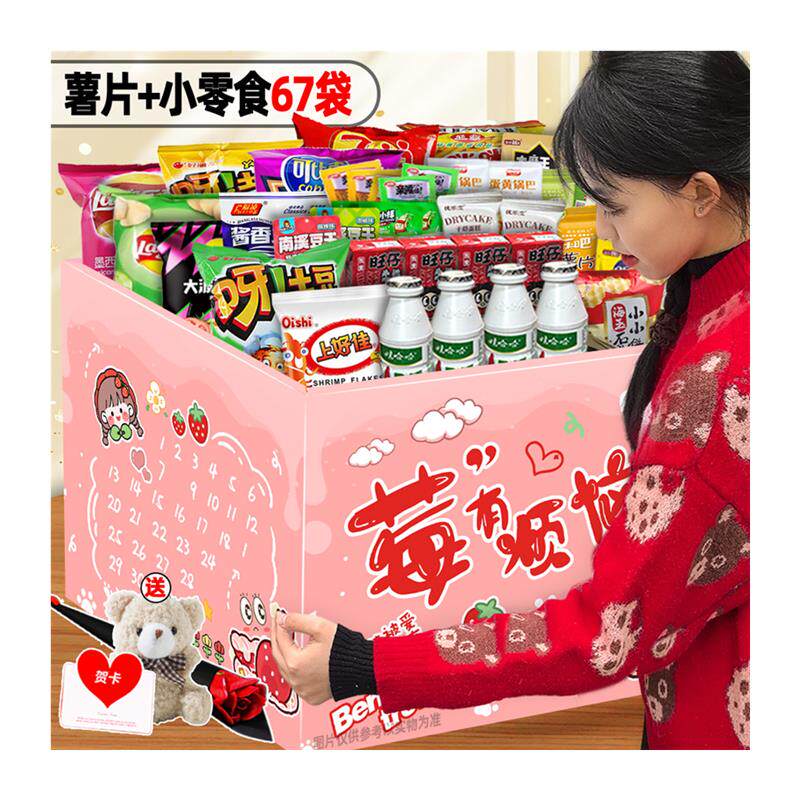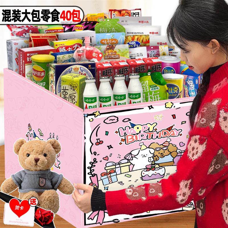 直供零食大礼包整箱送女友小朋友生日礼物超大巨型礼盒装薯片辣条