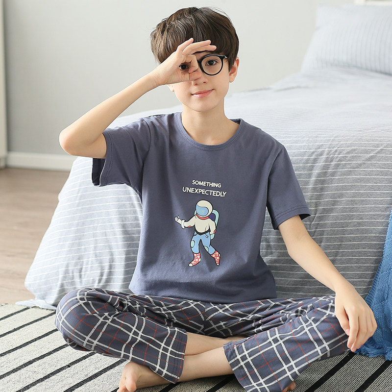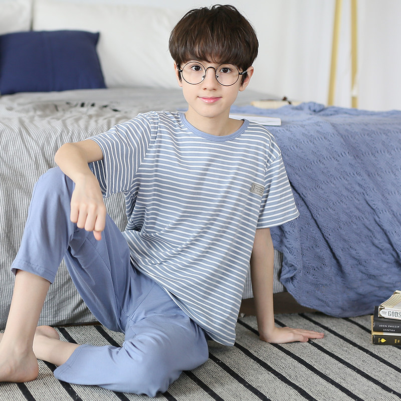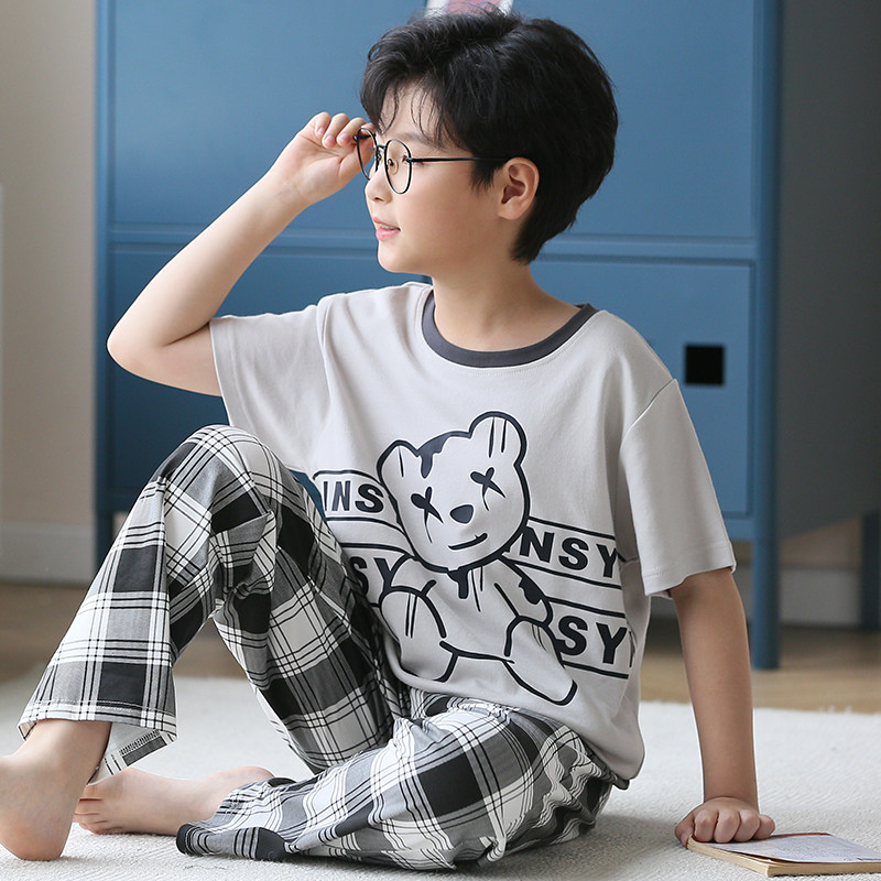 红豆儿童睡衣男童夏季薄款短袖长裤纯棉男孩春秋大童空调服套装家