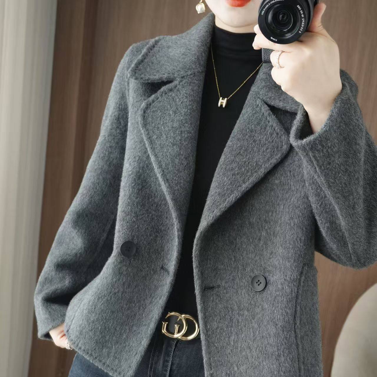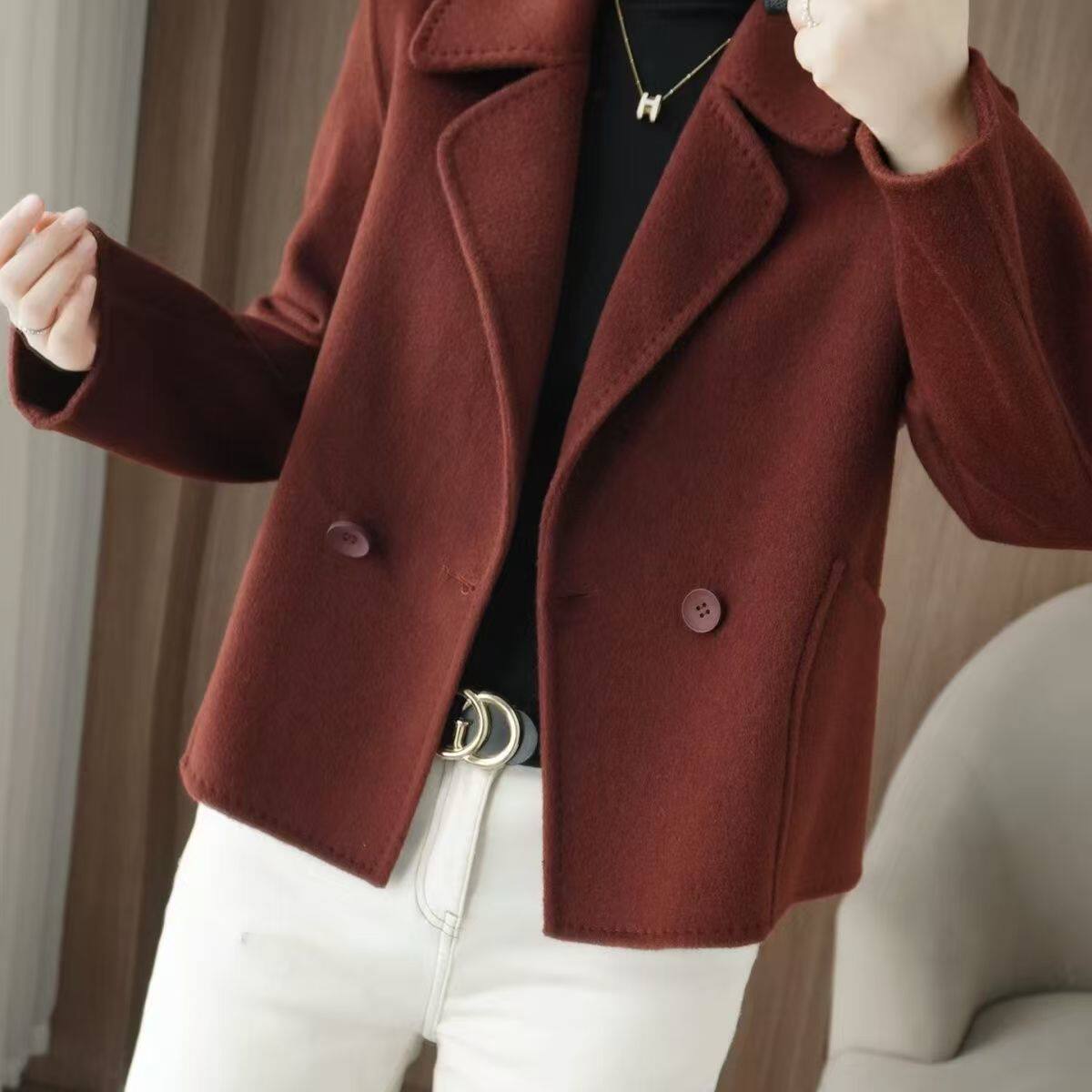 西装领双面绒外套短款加厚保暖时尚冬季妈妈装羊毛呢大衣外套风衣
