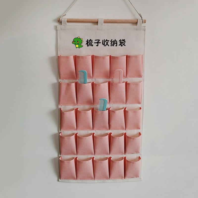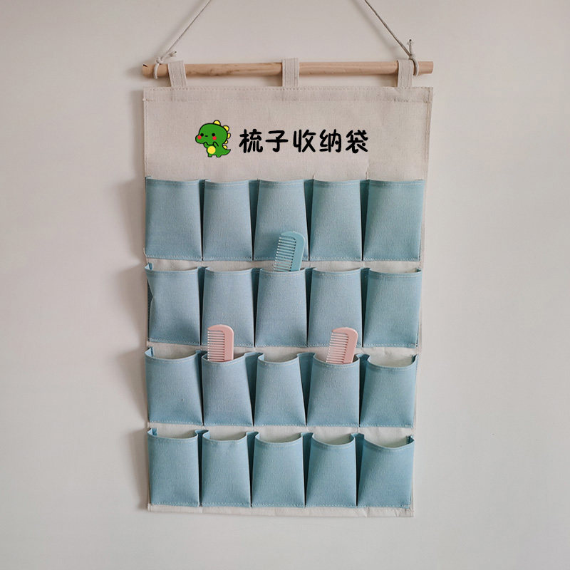幼教具壁挂式帆布梳子收纳袋儿童梳子发饰口罩口红手表画笔储物袋