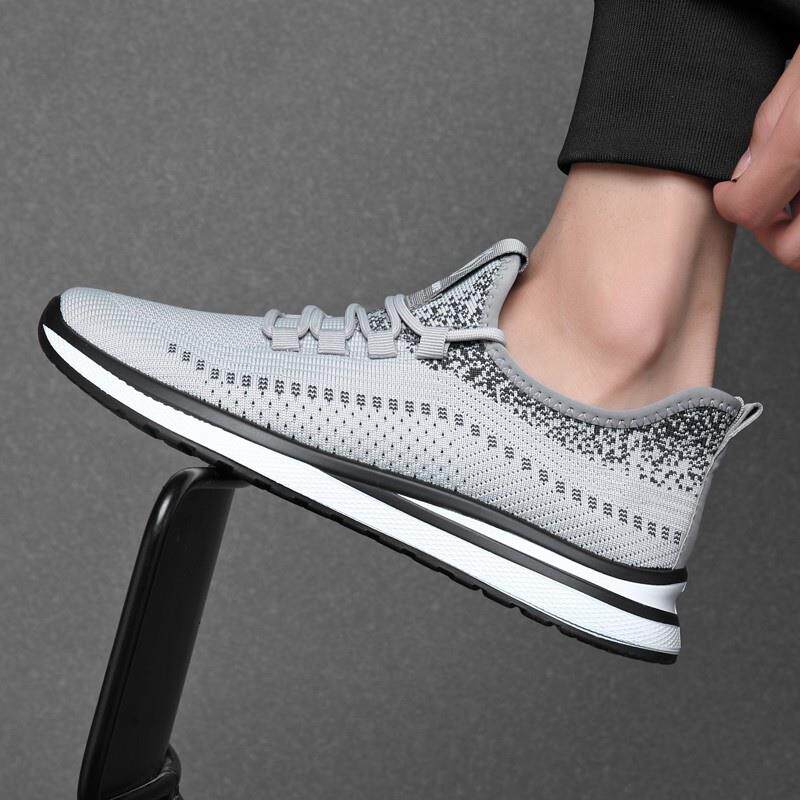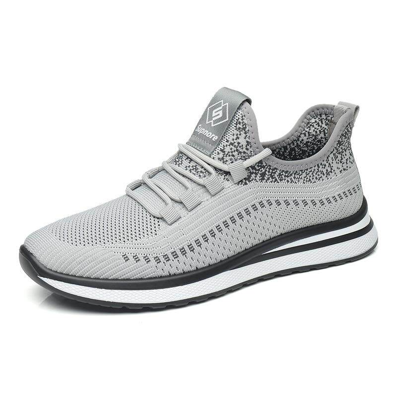 男鞋夏季透气2025新款飞织网面休闲鞋轻便防滑厚底减震跑步运动鞋