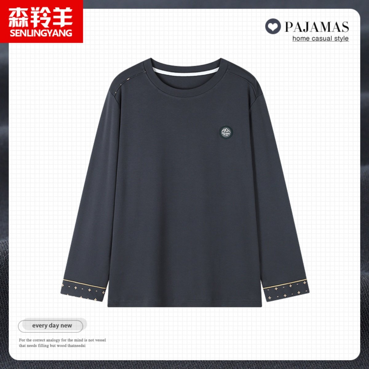 睡衣纯棉单件上衣男款春秋季宽松长袖全棉T恤男士休闲家居服薄款