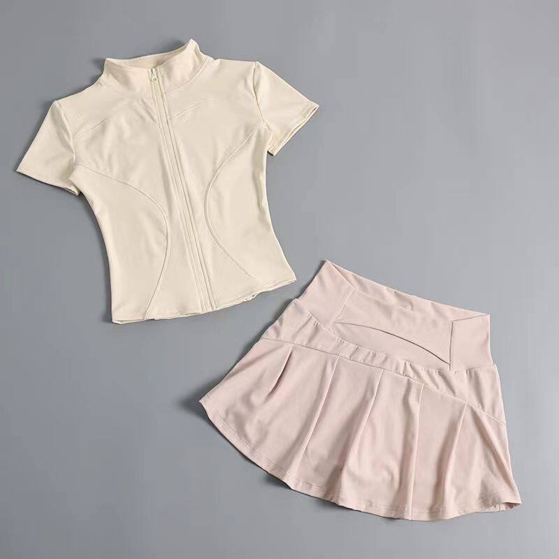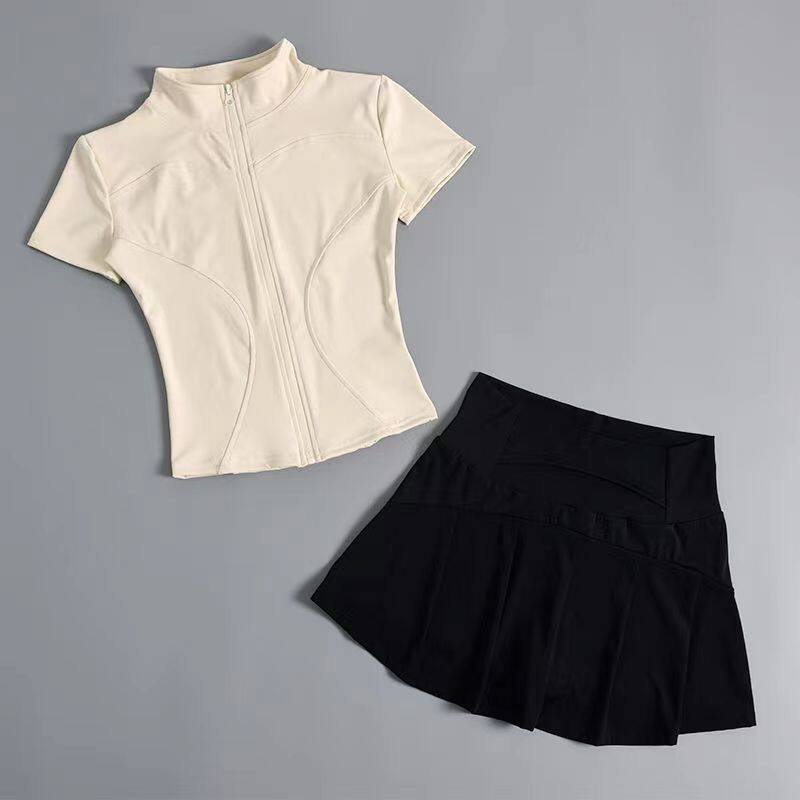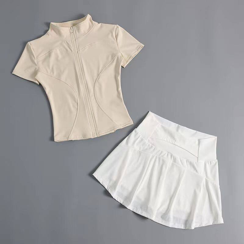 运动套装女修身显瘦速干瑜伽服上衣短袖普拉提训练跑步羽毛网球裙
