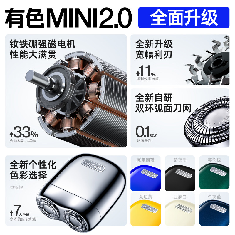 有色yoose电动剃须刀迷你便携款男士刮胡刀合金机身礼物mini2.0