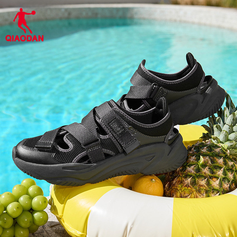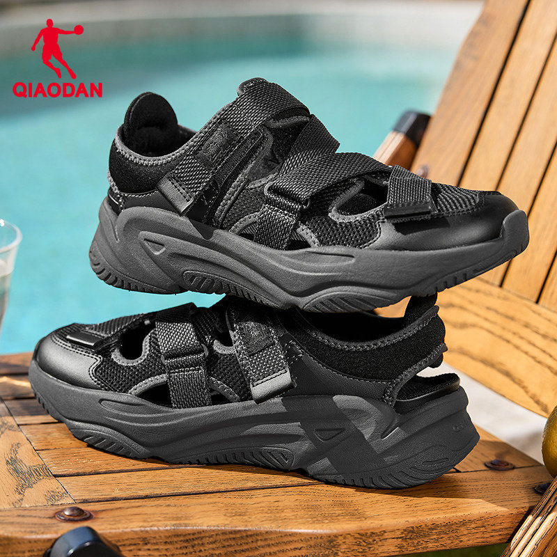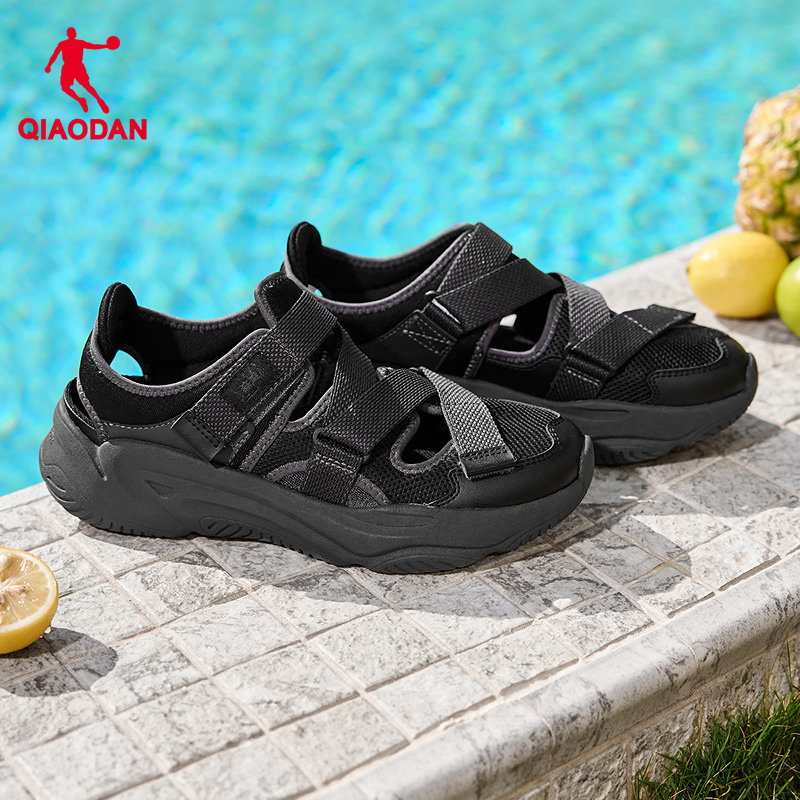 乔丹官方运动沙滩凉鞋男鞋玛丽珍夏季新款黑色凉拖户外透气魔术贴