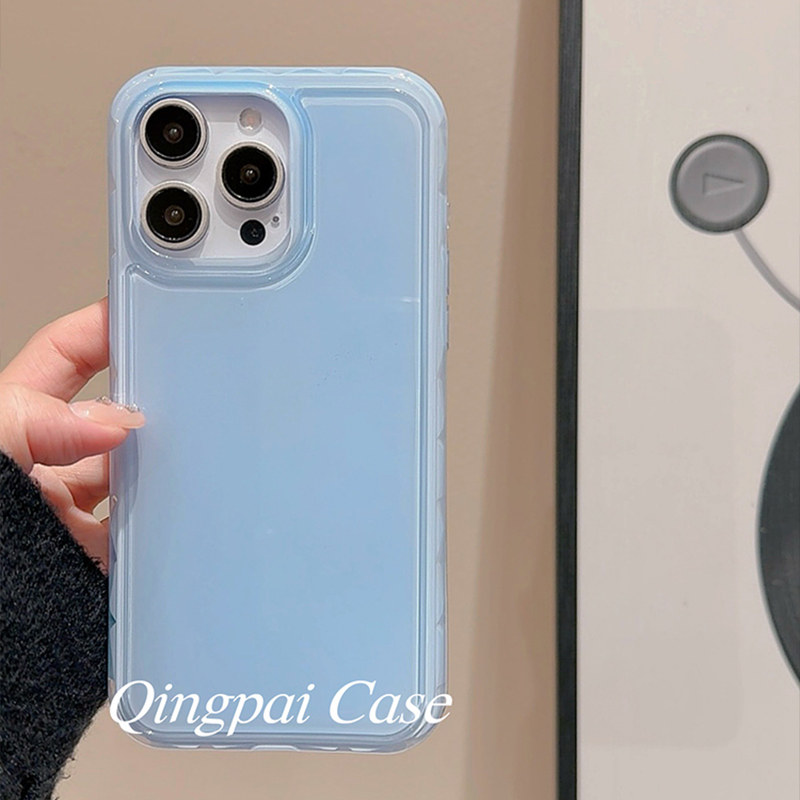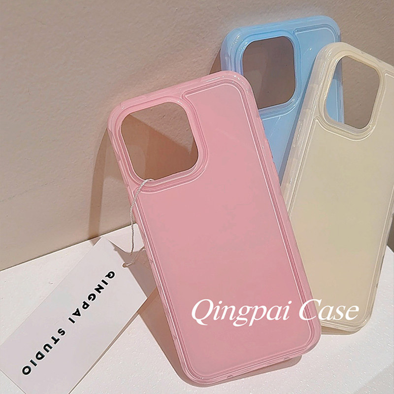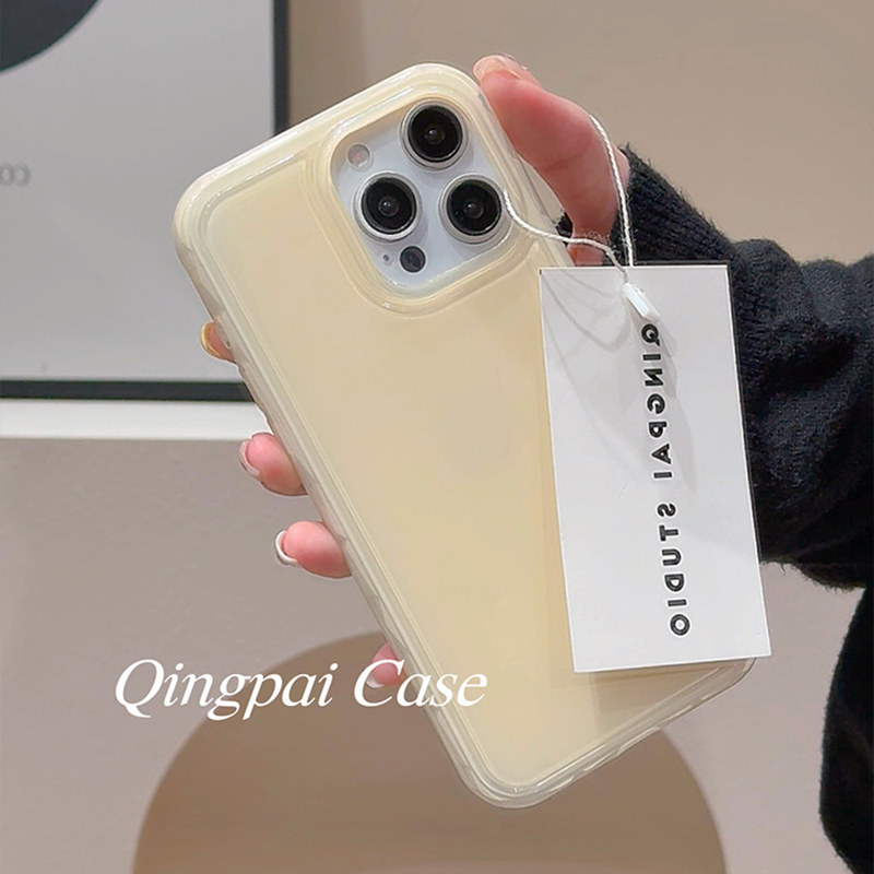 轻派韩系ins简约纯色壳适用苹果15promax手机壳iphone13新款16pro女17高级感14小众极简亮面气囊防摔全包软壳
