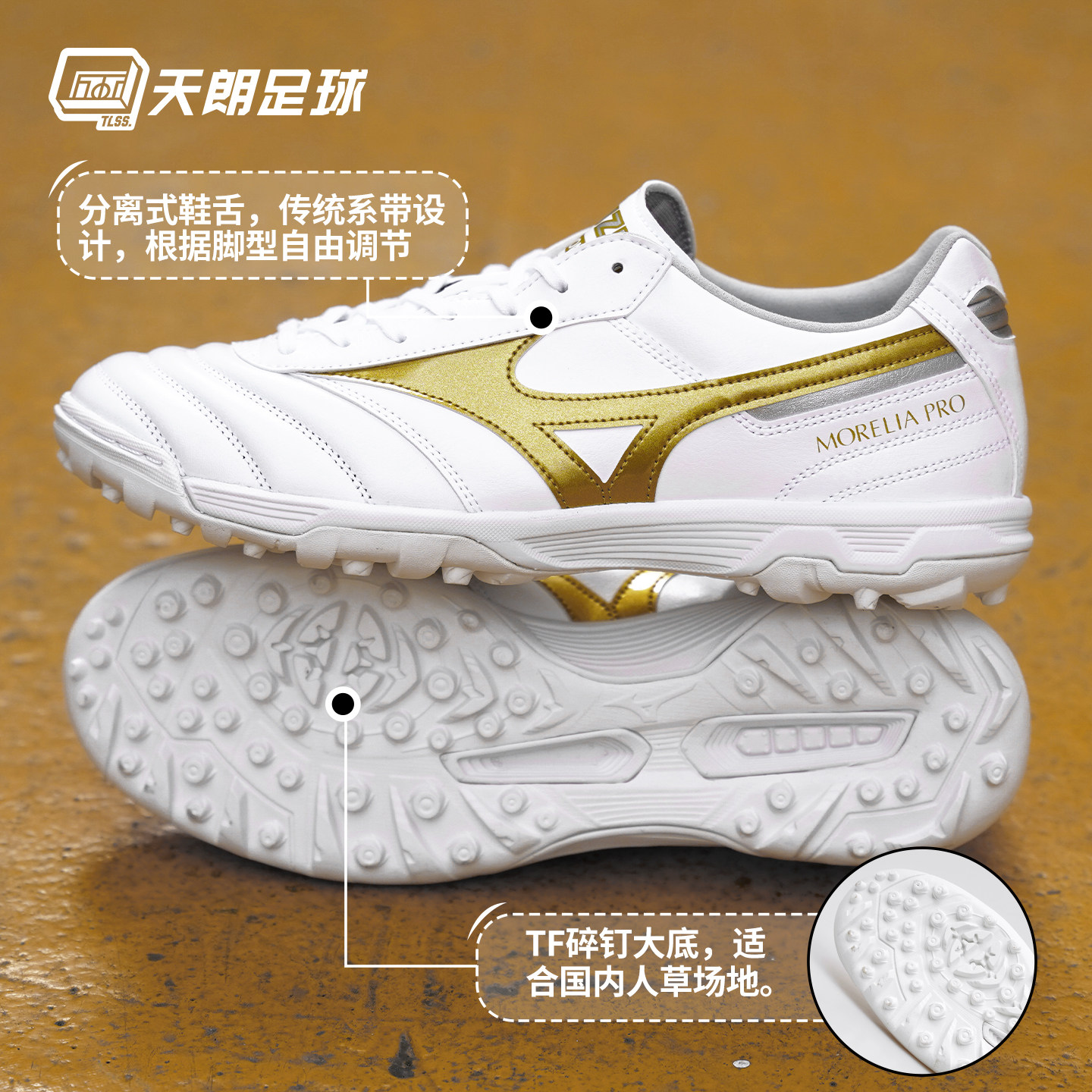 天朗足球 美津浓莫雷拉 II PRO次高端TF碎钉人草足球鞋P1GD260650