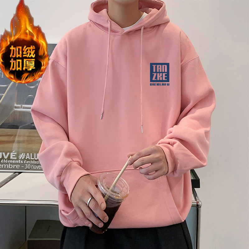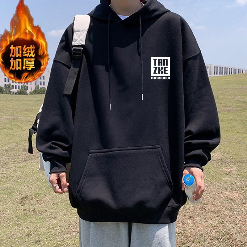 冬季青少年男加绒连帽卫衣外套初中高中生保暖上衣服带帽衫秋冬款