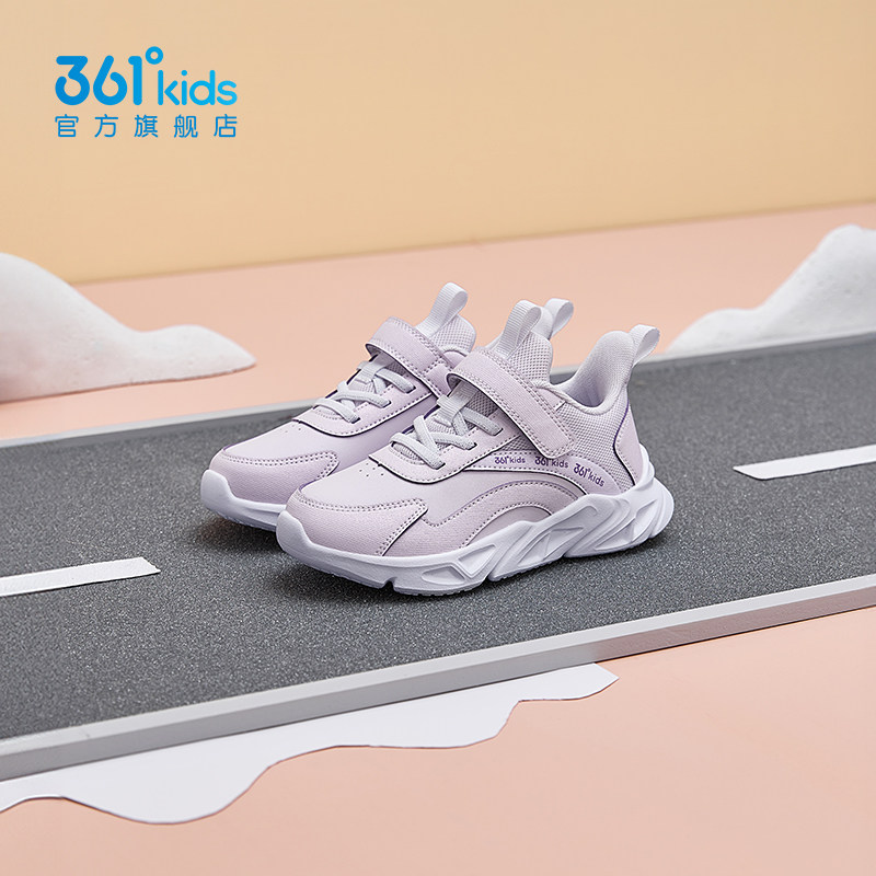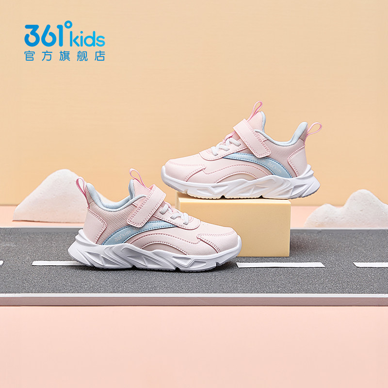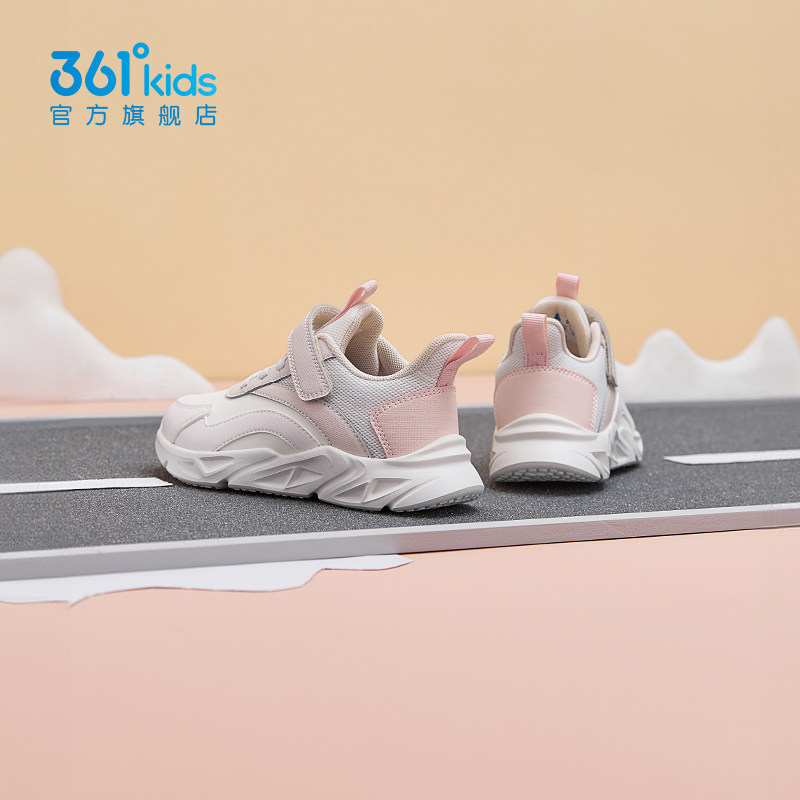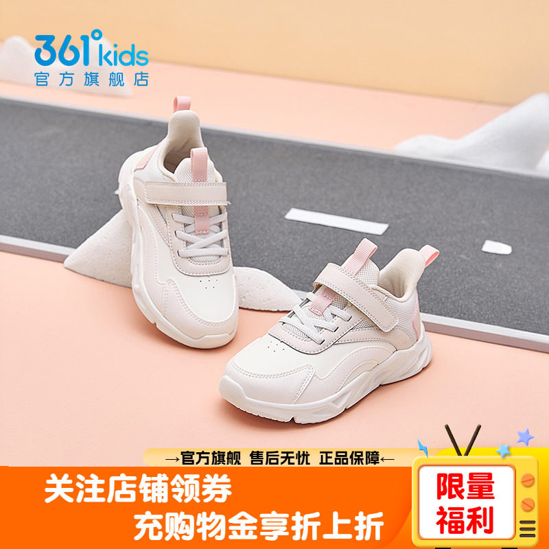 361正品童鞋女童皮面防水跑步鞋春季新款学生女孩魔术贴运动鞋子