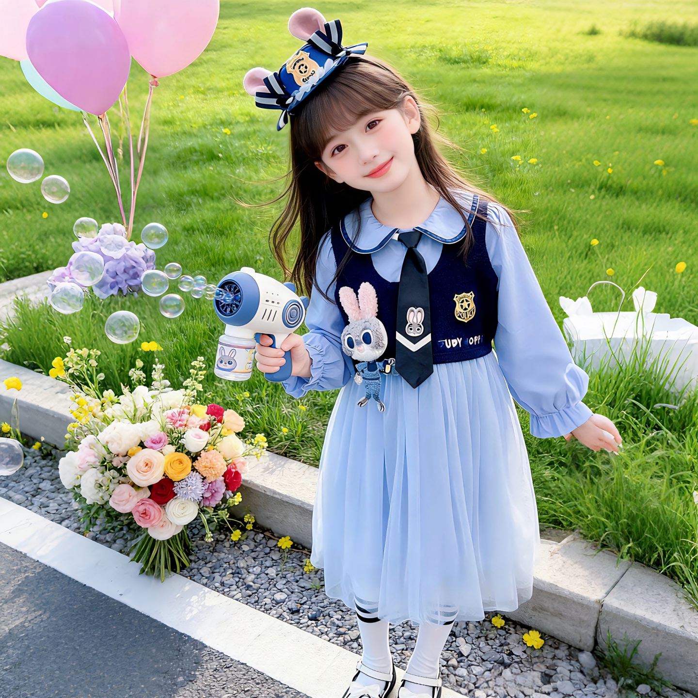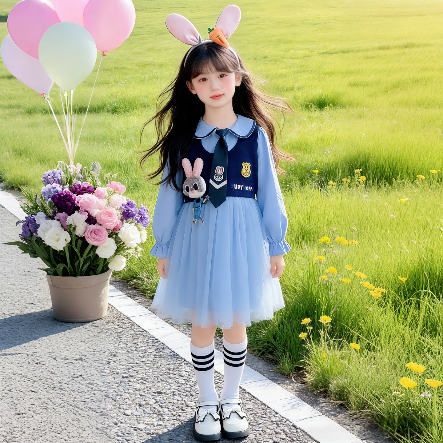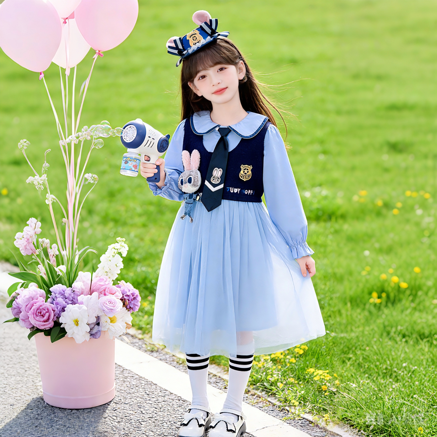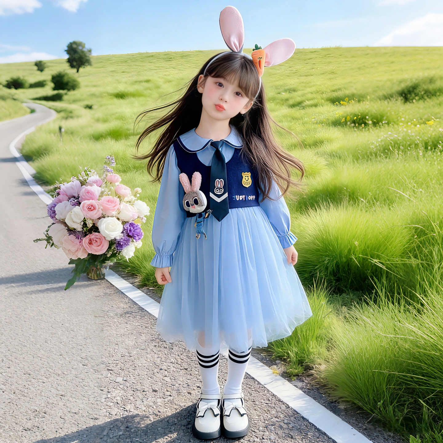 中大童连衣裙早春洛丽塔公主裙儿童洋气可爱裙子兔子警官女童套装