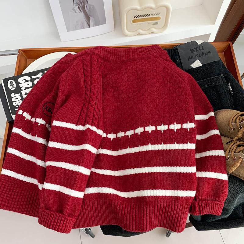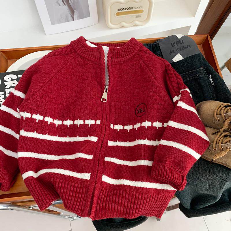 男童毛衣开衫2025新款儿童红色喜庆过年针织衫中小童柔软洋气上衣