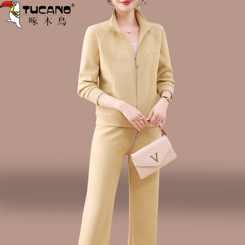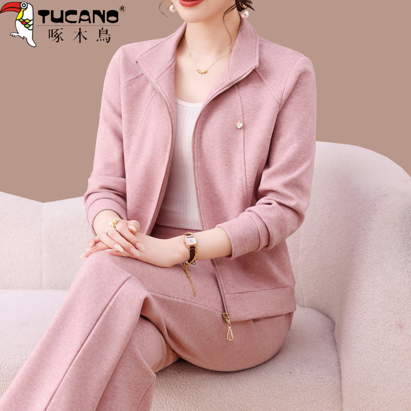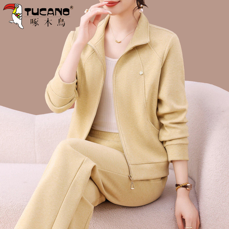 啄木鸟中年妈妈开衫运动套装女士春秋2026新款休闲时尚简约两件套