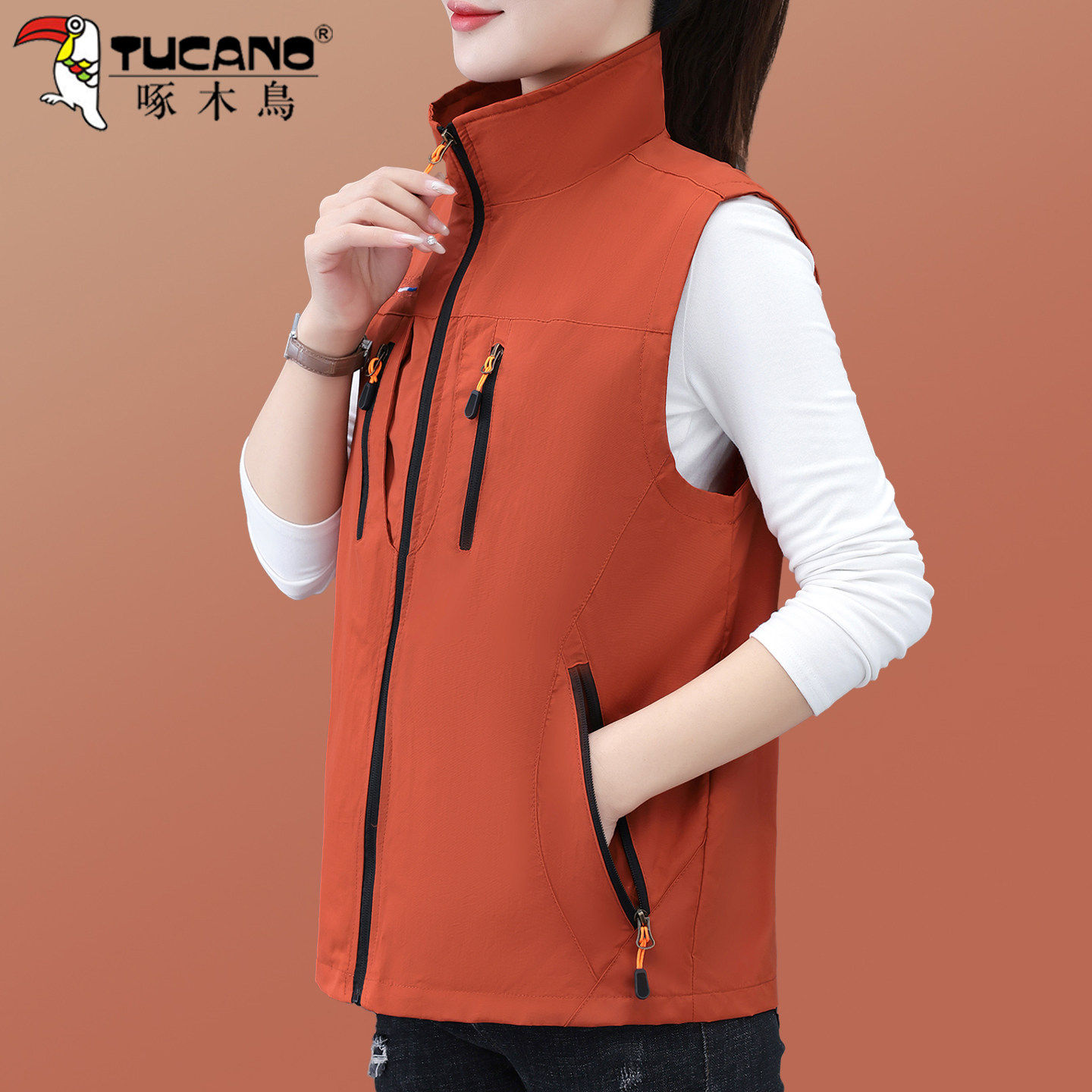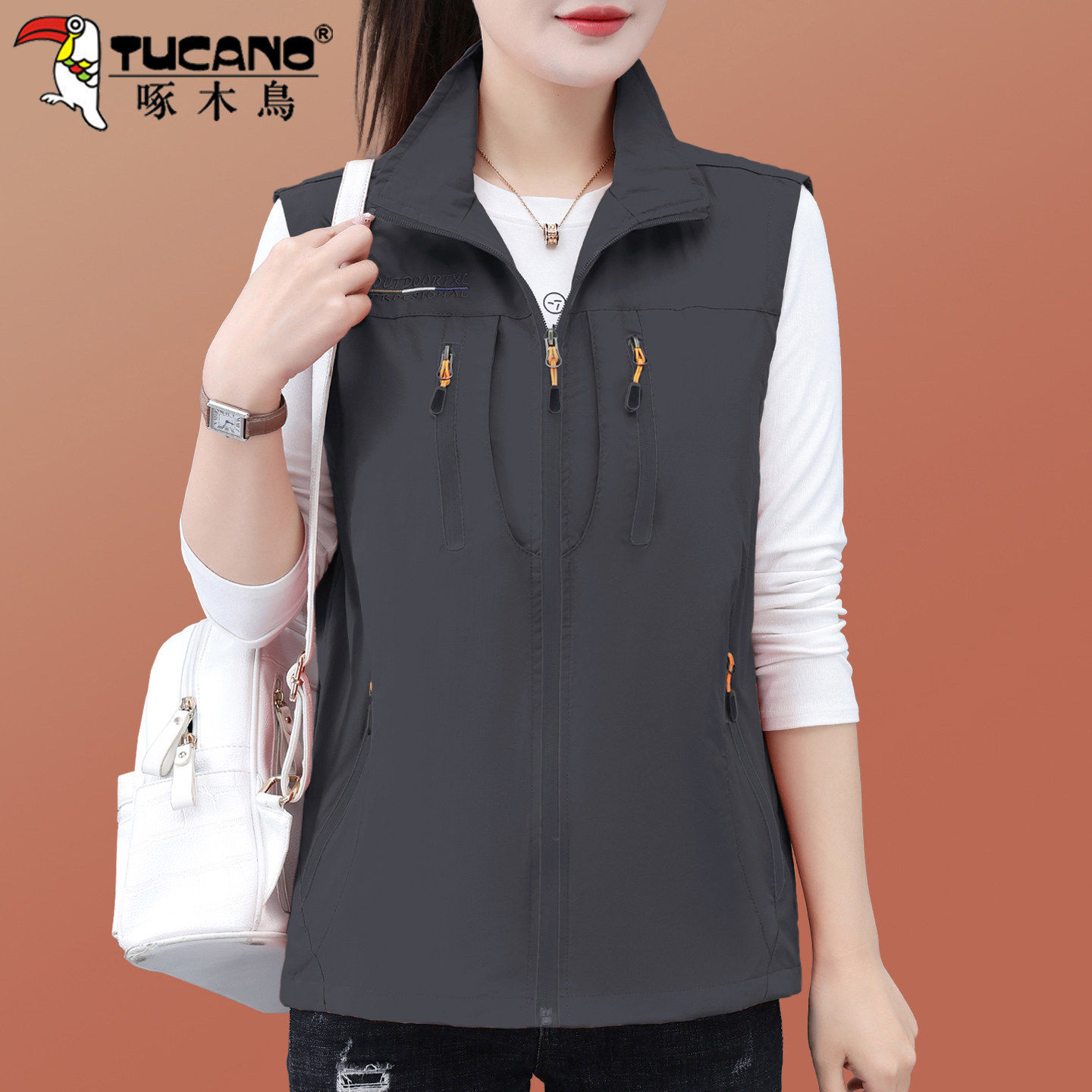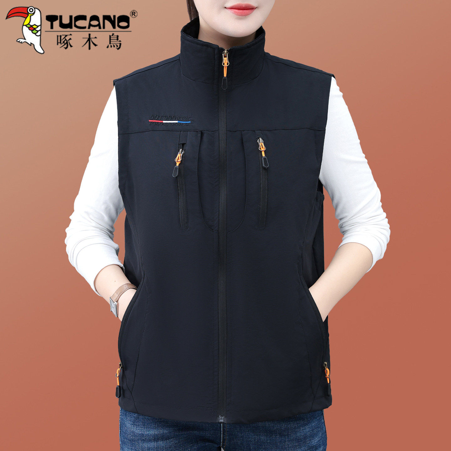 啄木鸟春秋薄款防风马甲女款2026新款妈妈装时尚立领工装坎肩外套