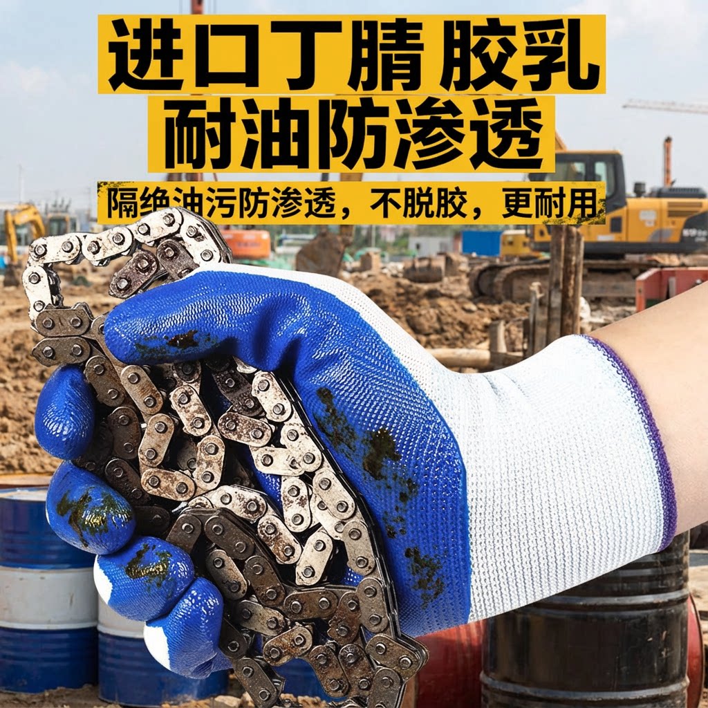 橡胶丁腈掌浸胶皮手套劳保耐磨工作防水防滑加厚耐用工厂干活劳工