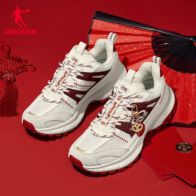乔丹开元V3休闲鞋男老爹鞋2026春季新年红色鞋子厚底增高网面男鞋