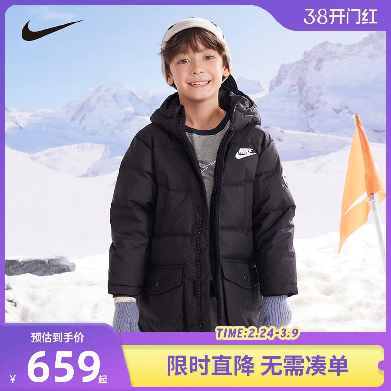 Nike童装儿童长款羽绒服男女童冬季保暖抗寒防风外套厚NY2342002