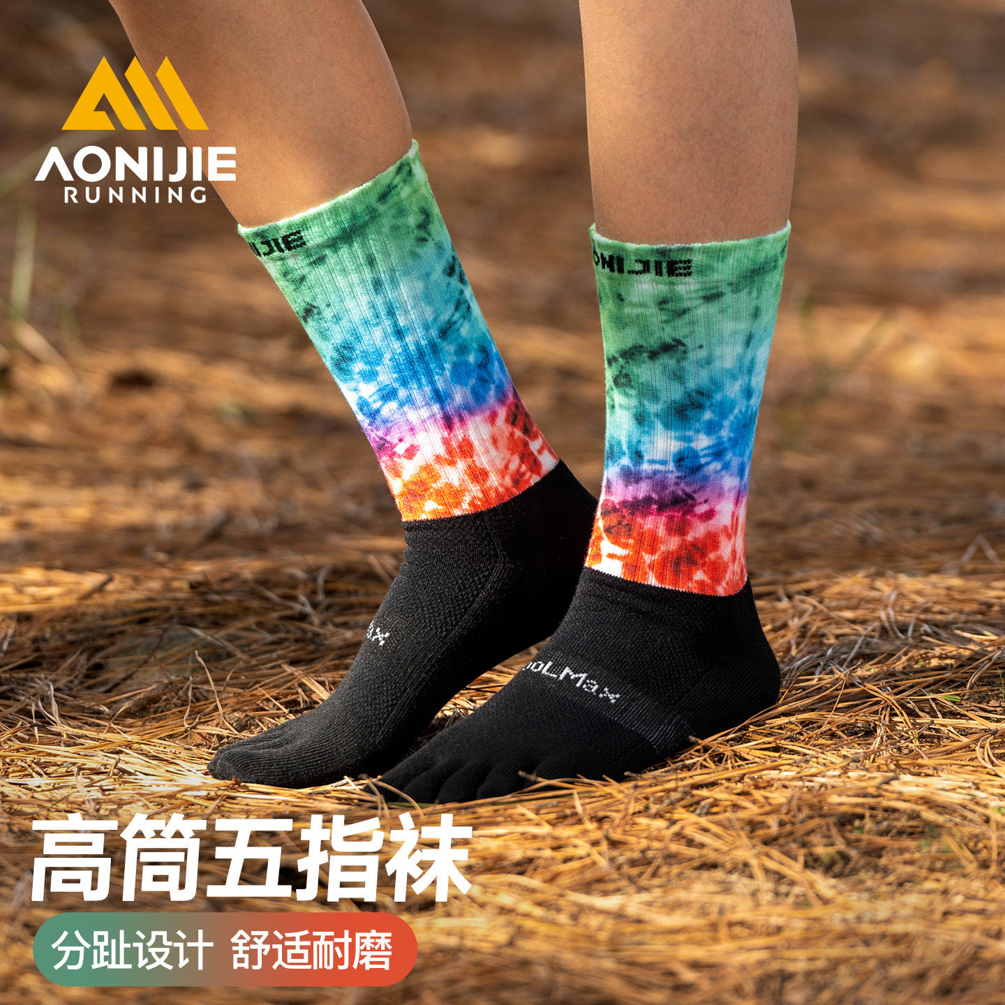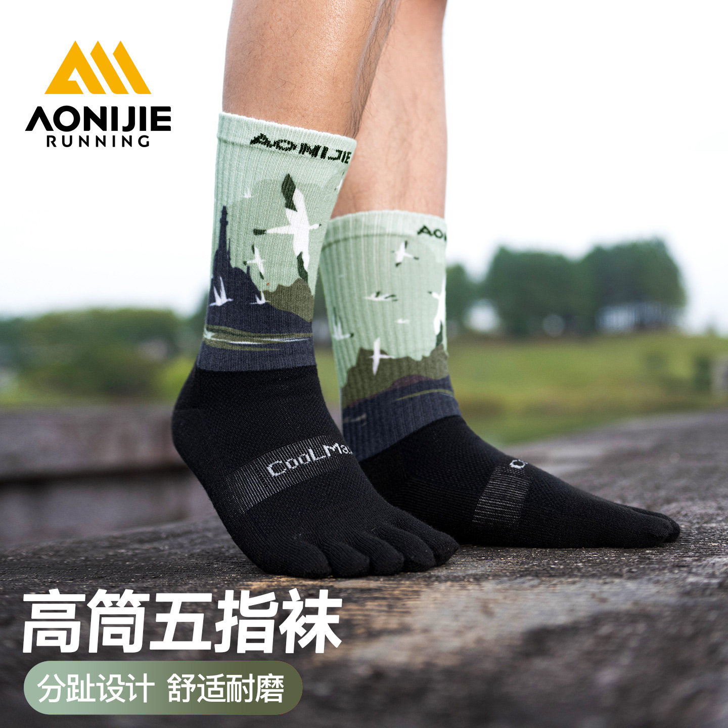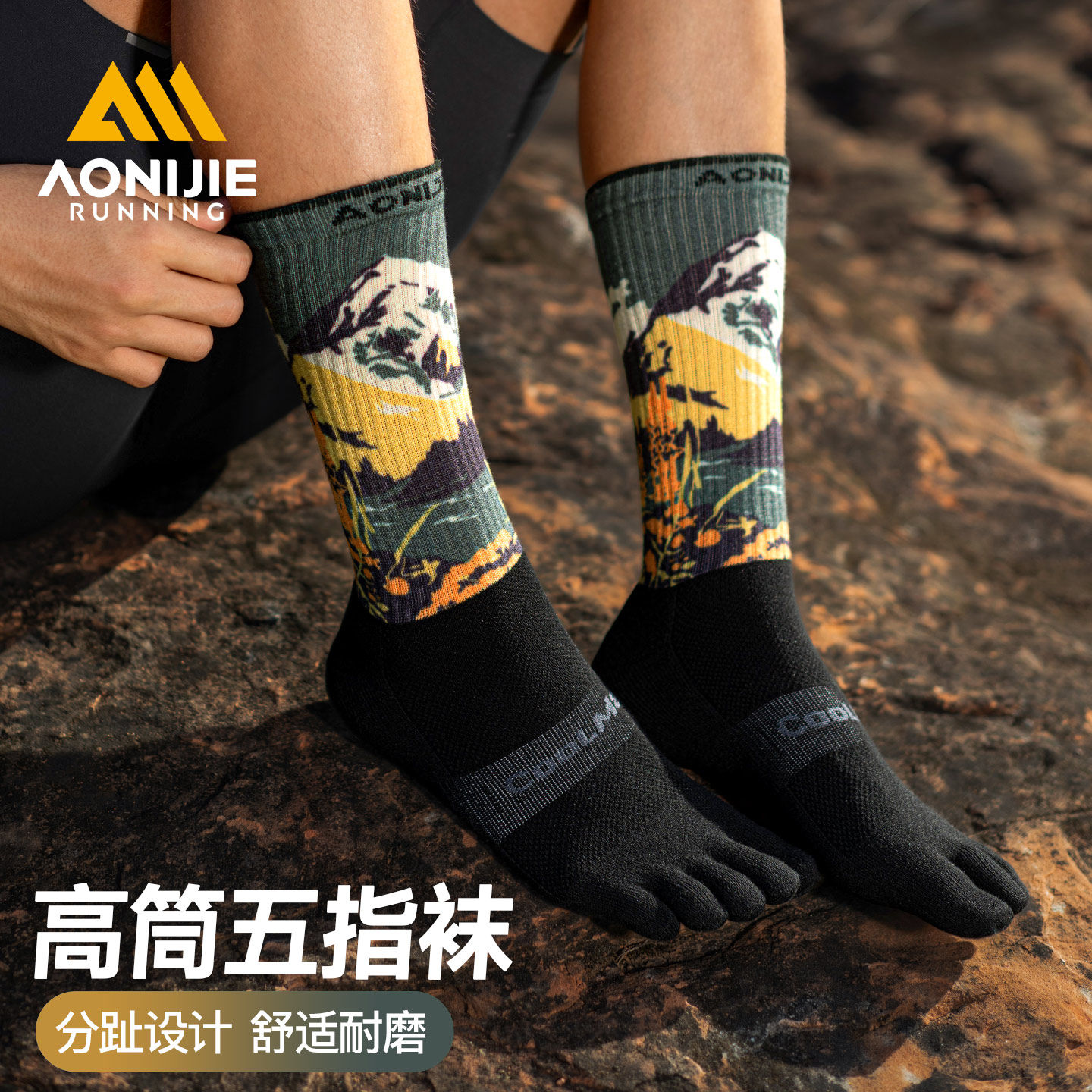 奥尼捷运动长筒五指袜专业户外登山徒步跑步袜马拉松越野分趾袜子