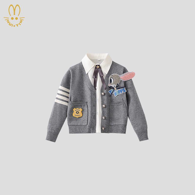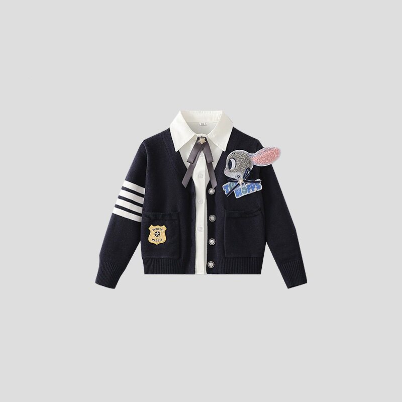 女童秋装新款兔子警官毛衣三件套jk裙子洋气套装秋冬儿童生日衣服